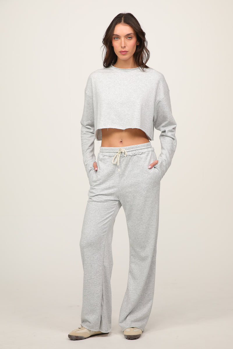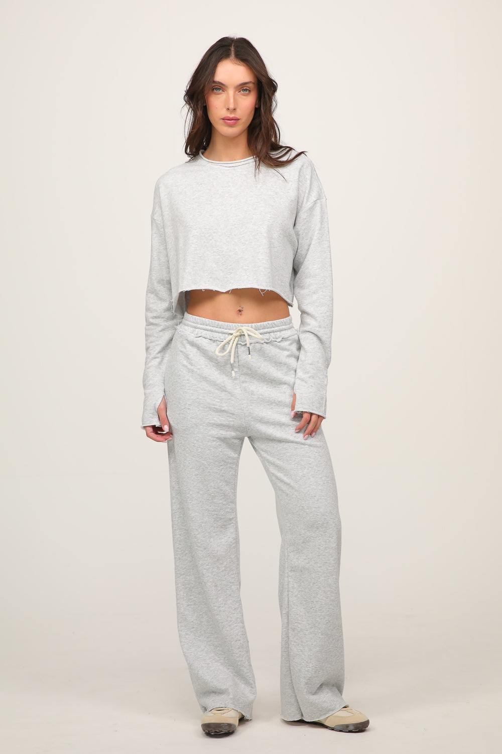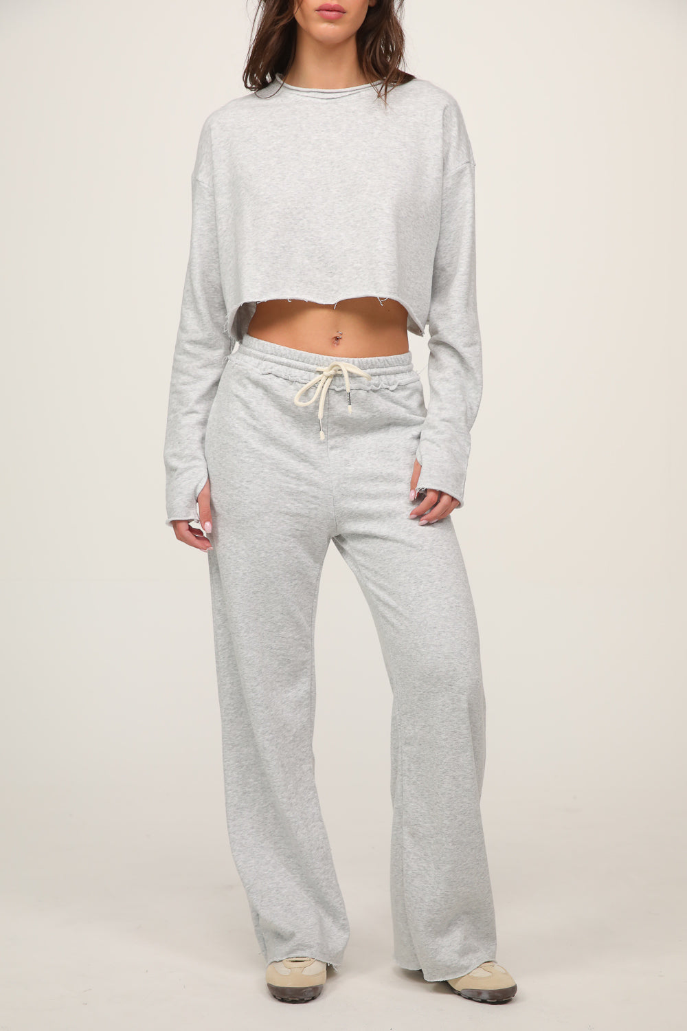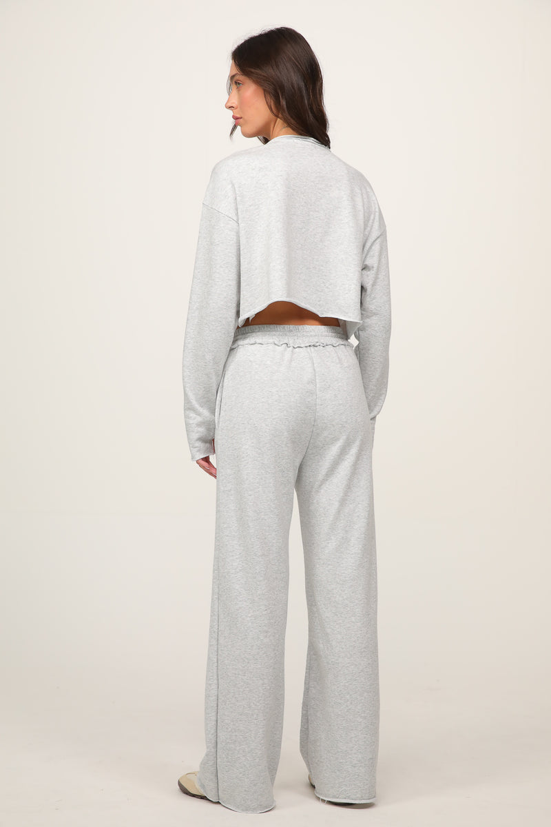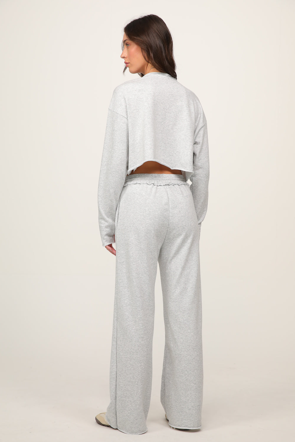 חליפה בגזרה נינוחה ומחמיאה, המשלבת מראה אלגנטי עם נוחות יומיומית. כוללת חולצה בגזרת קרופ רכה ומכנס בגזרה ישרה וארוכה, ליצירת לוק אחיד, מינימליסטי ומעודכן. עשויה בד קליל ונעים למגע.