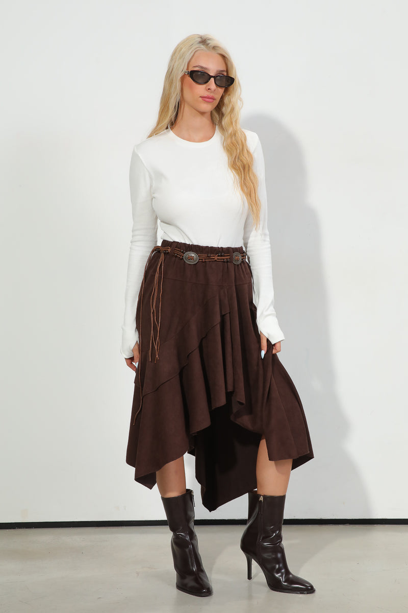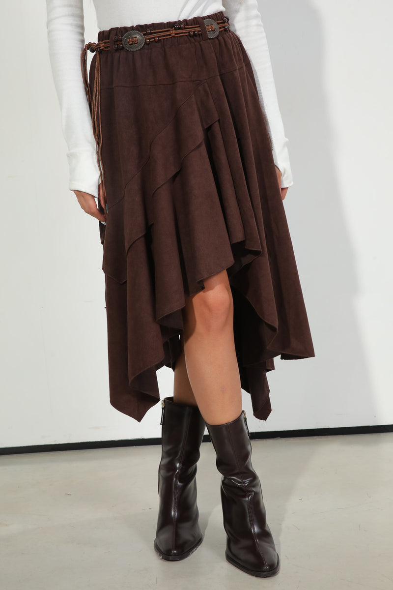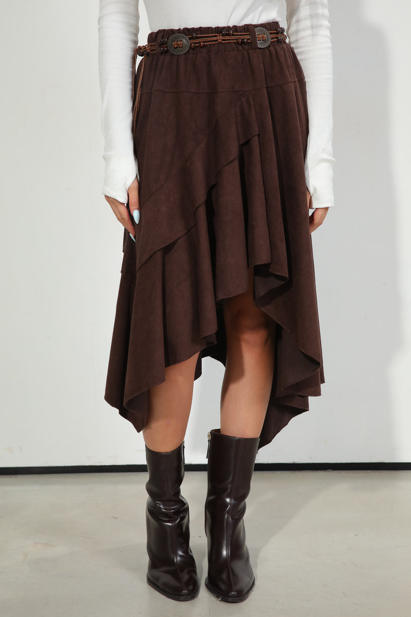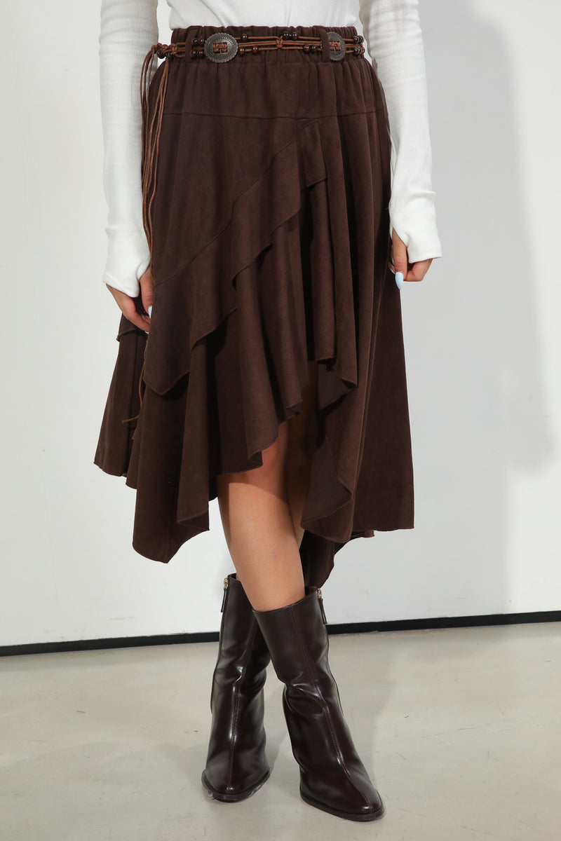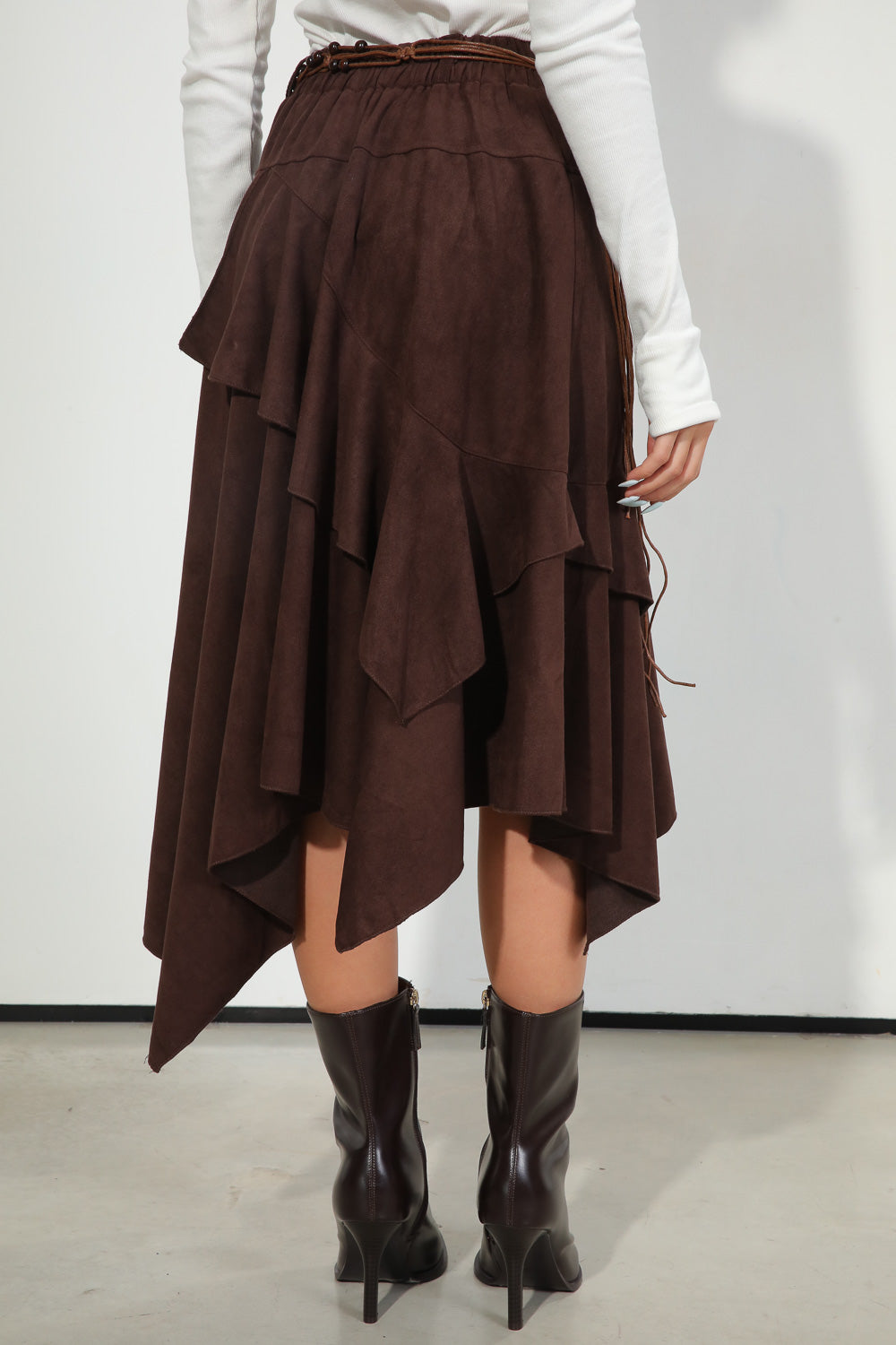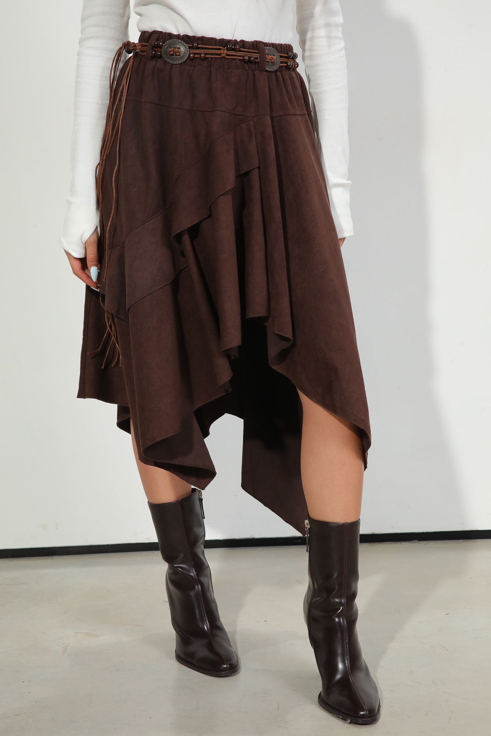 חצאית מידי מלמלות בטסקטורת ז'מש היסטרית בשילוב חגורת קשירה,