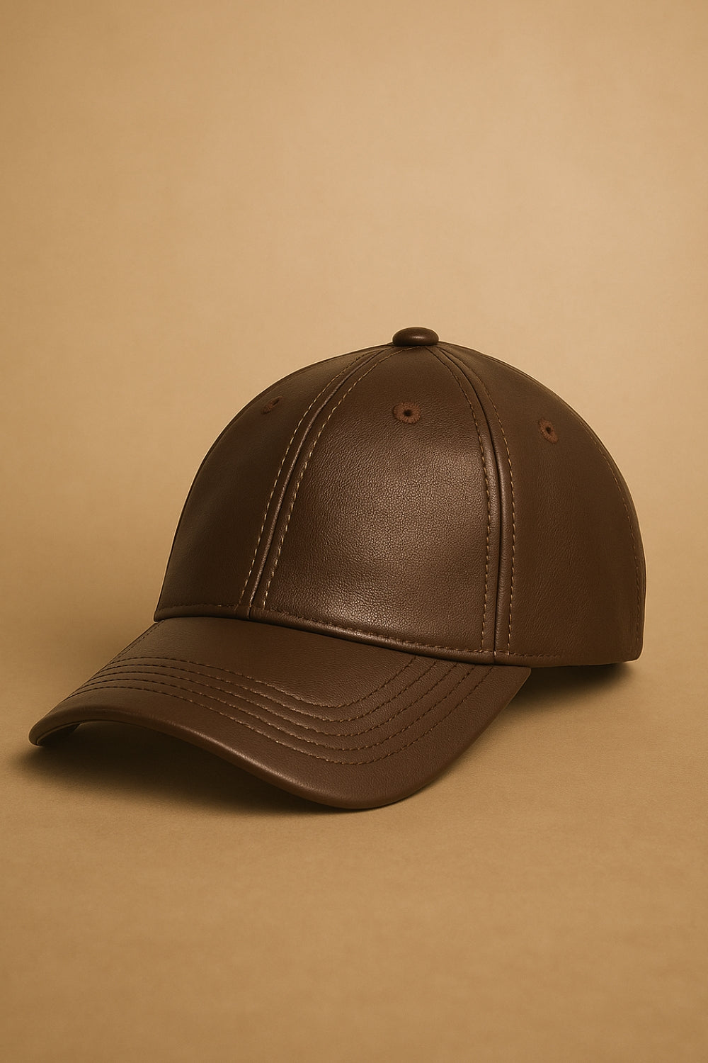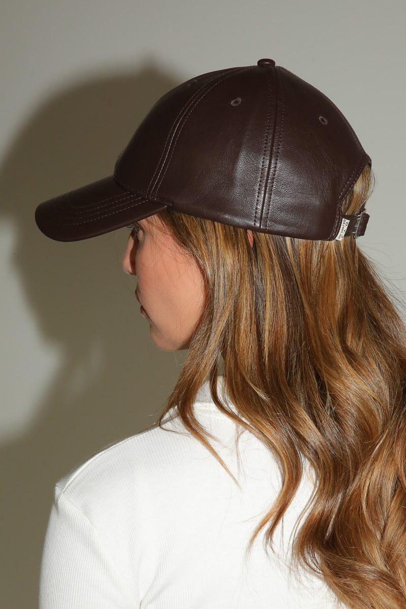 כובע מצחייה בגוון חום כהה, בטקסטורת דמוי עור היסטרי!