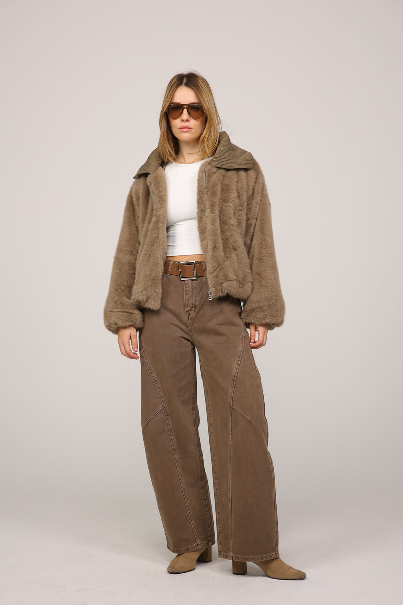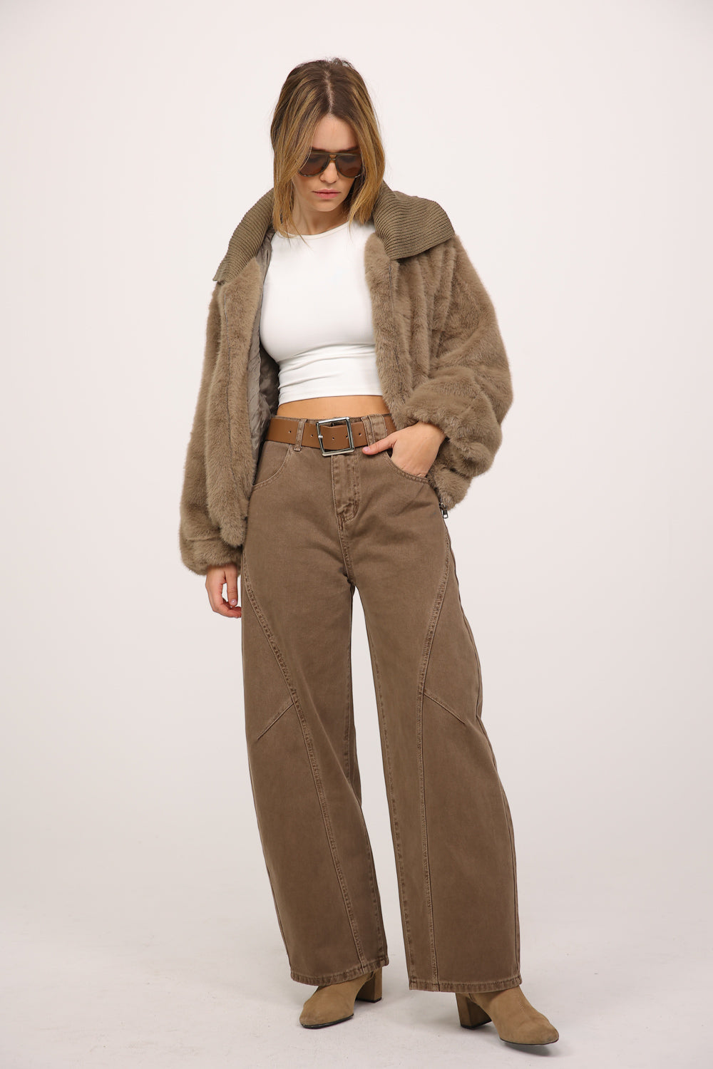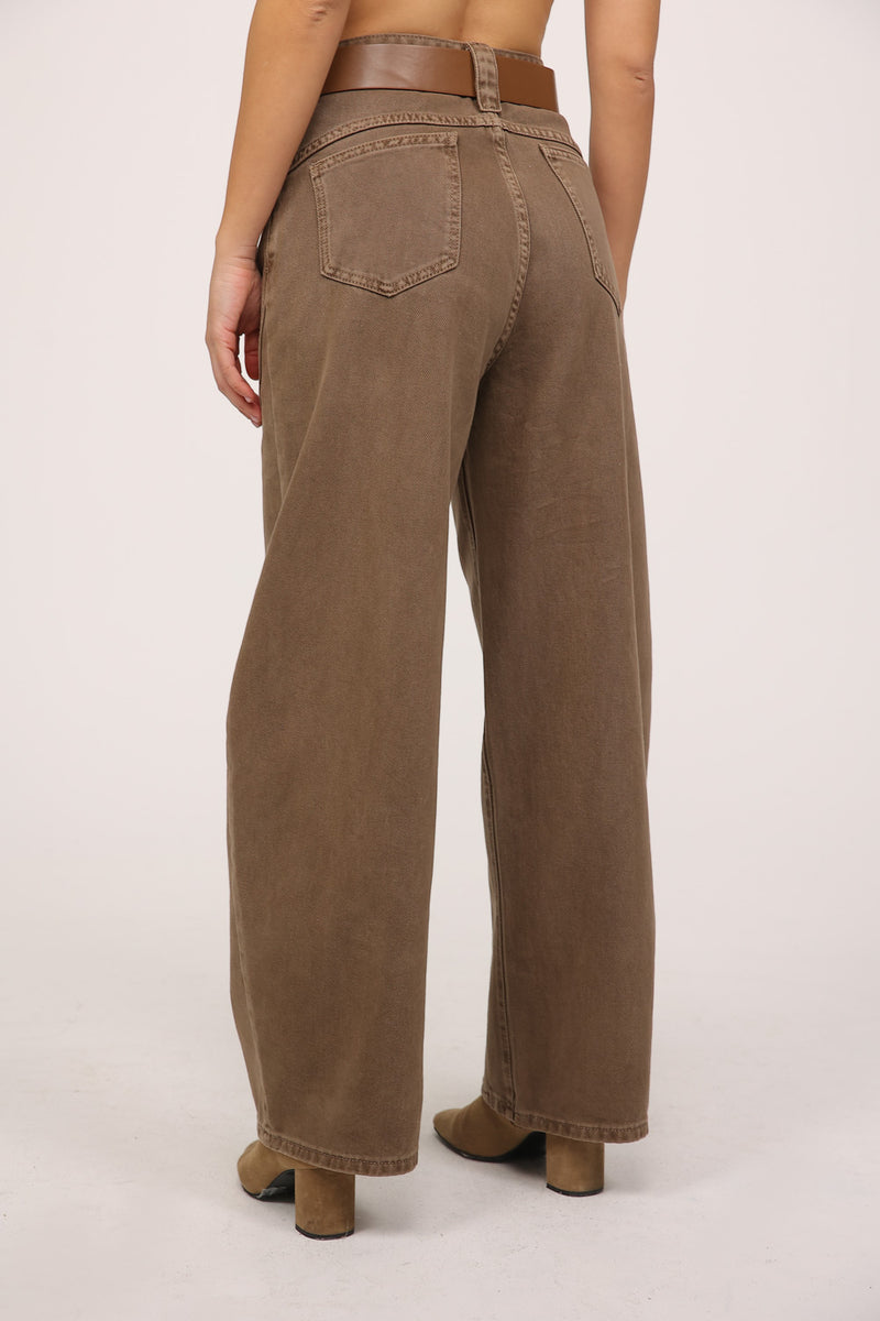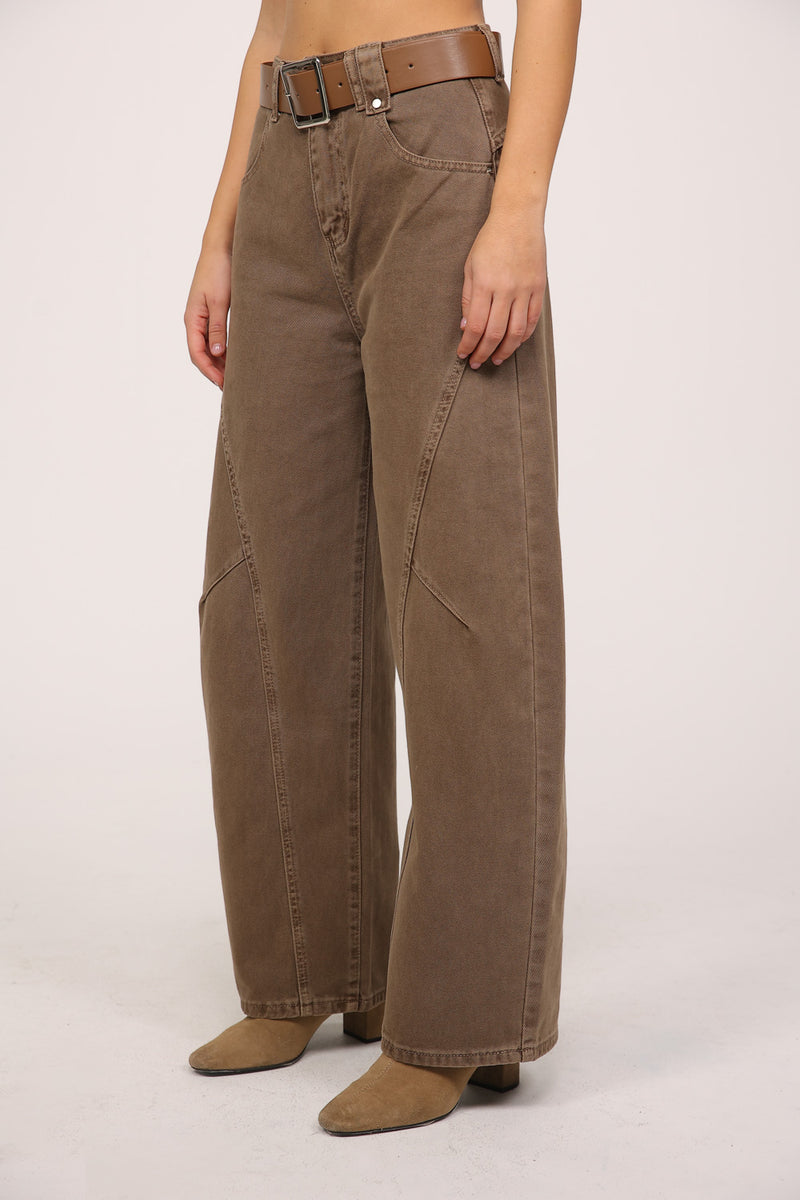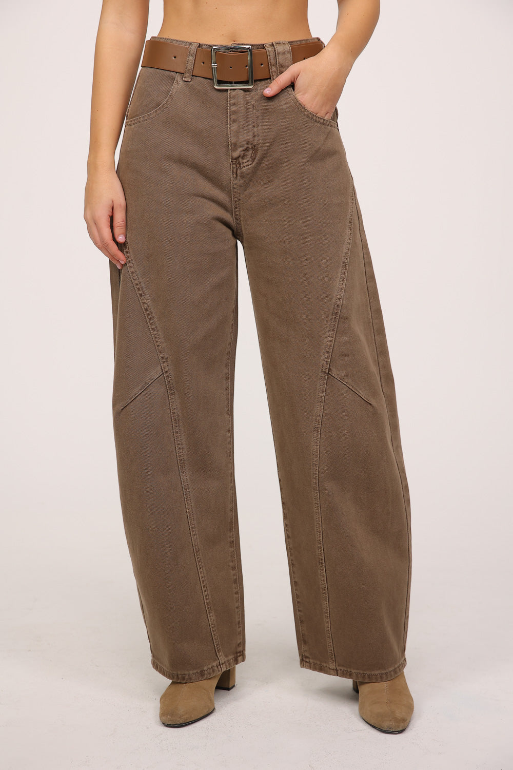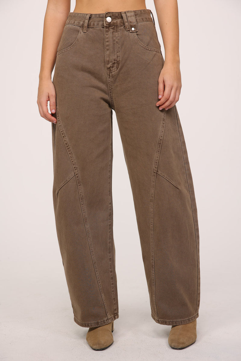מכנסיים בגזרת בלון גבוהה עם רגל רחבה ונפילה ישרה ונקייה,
