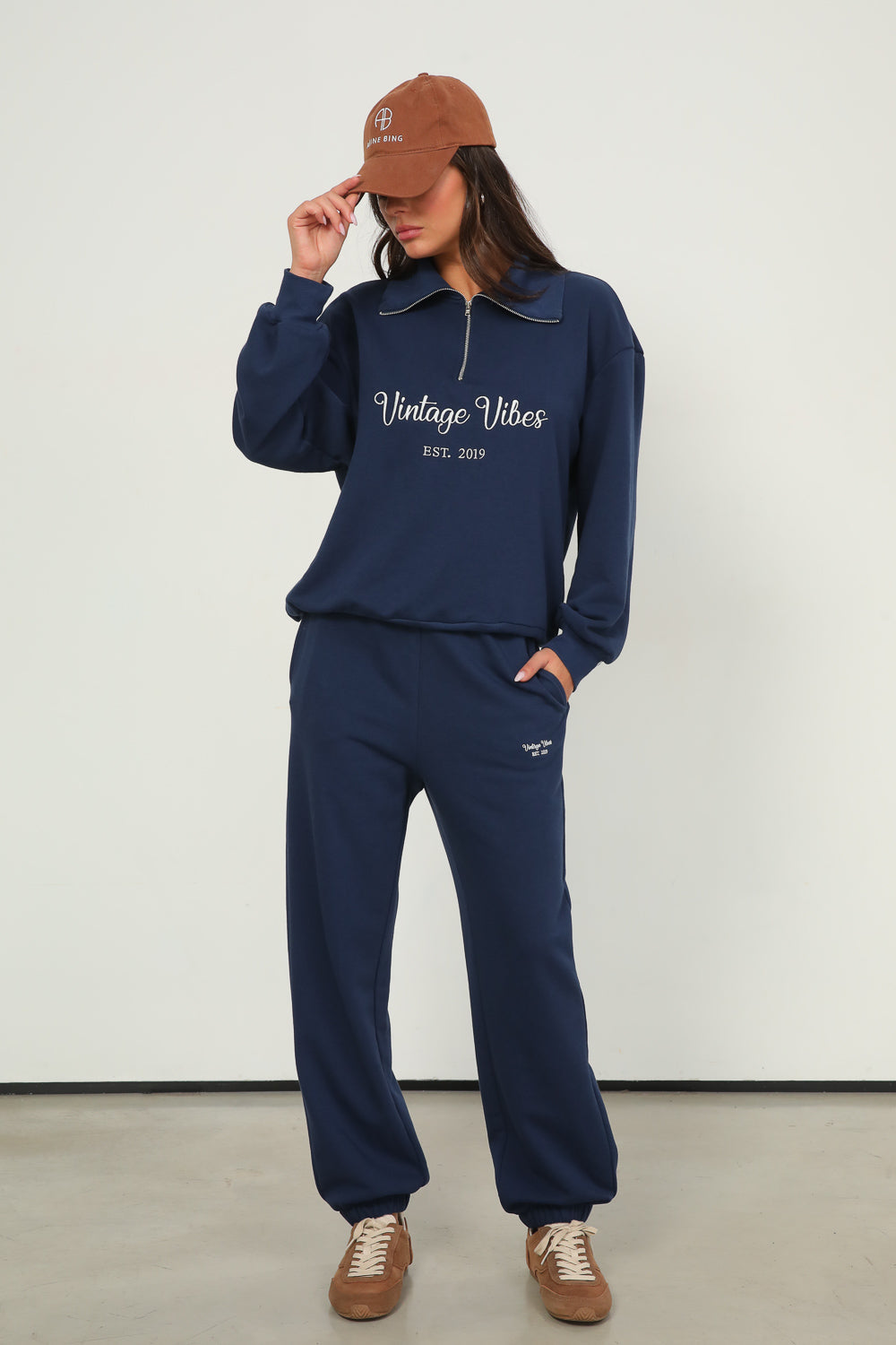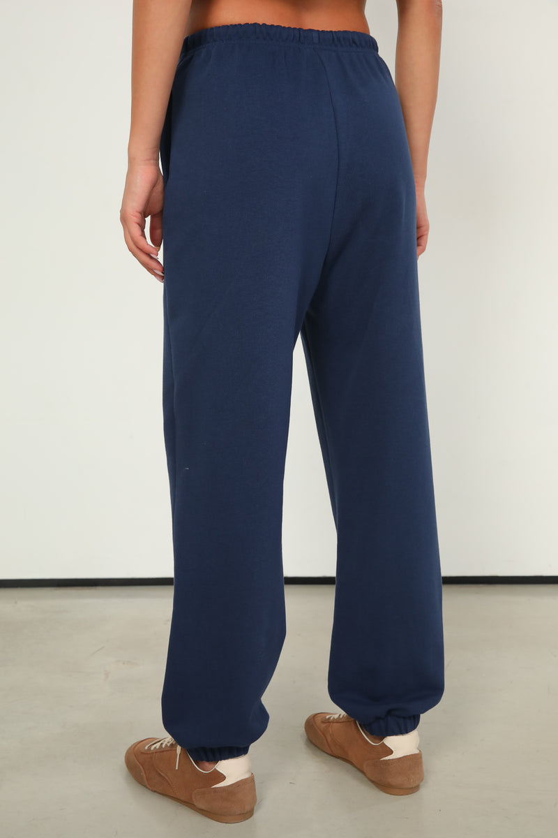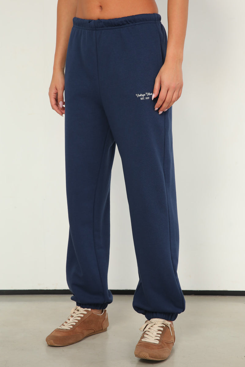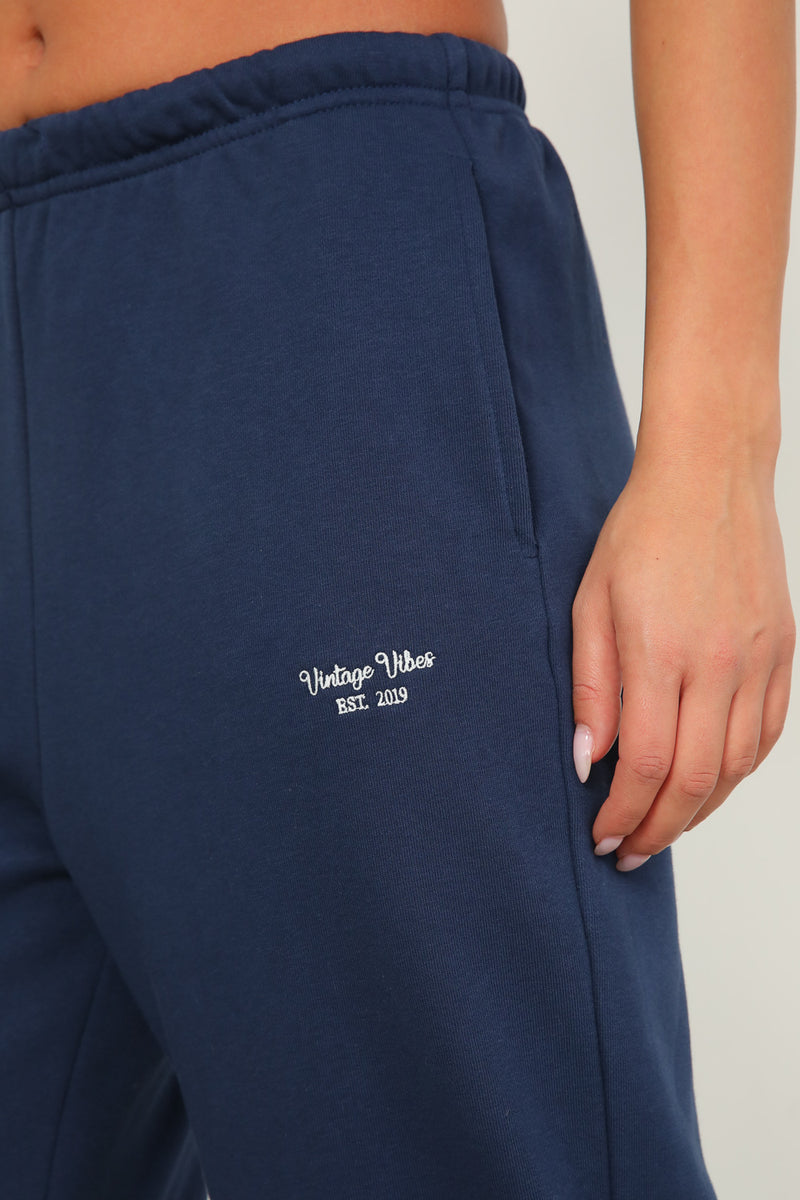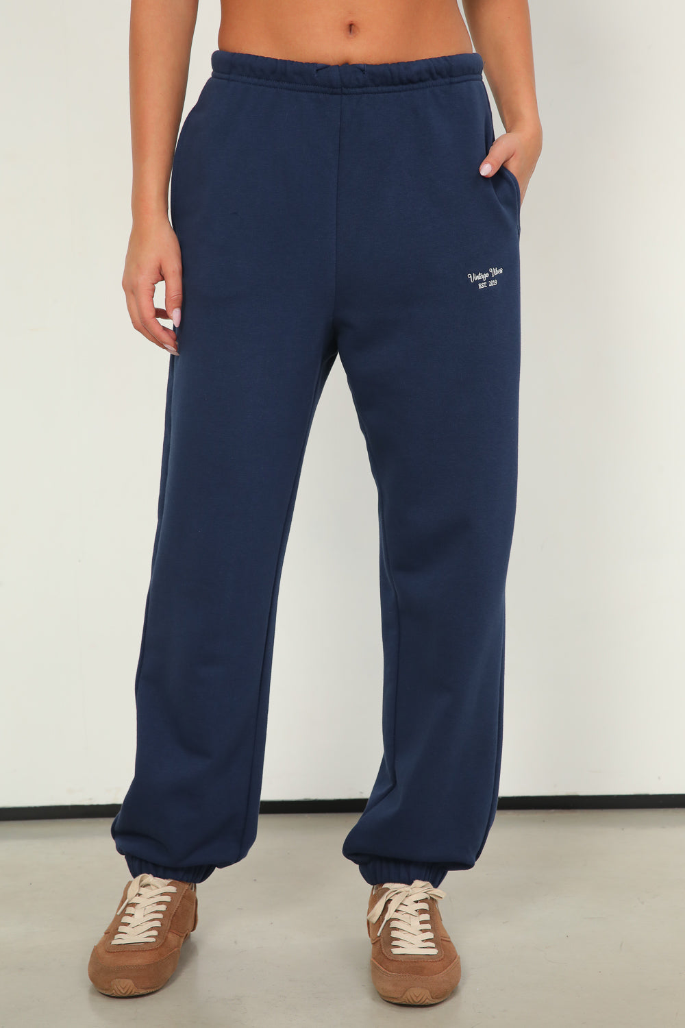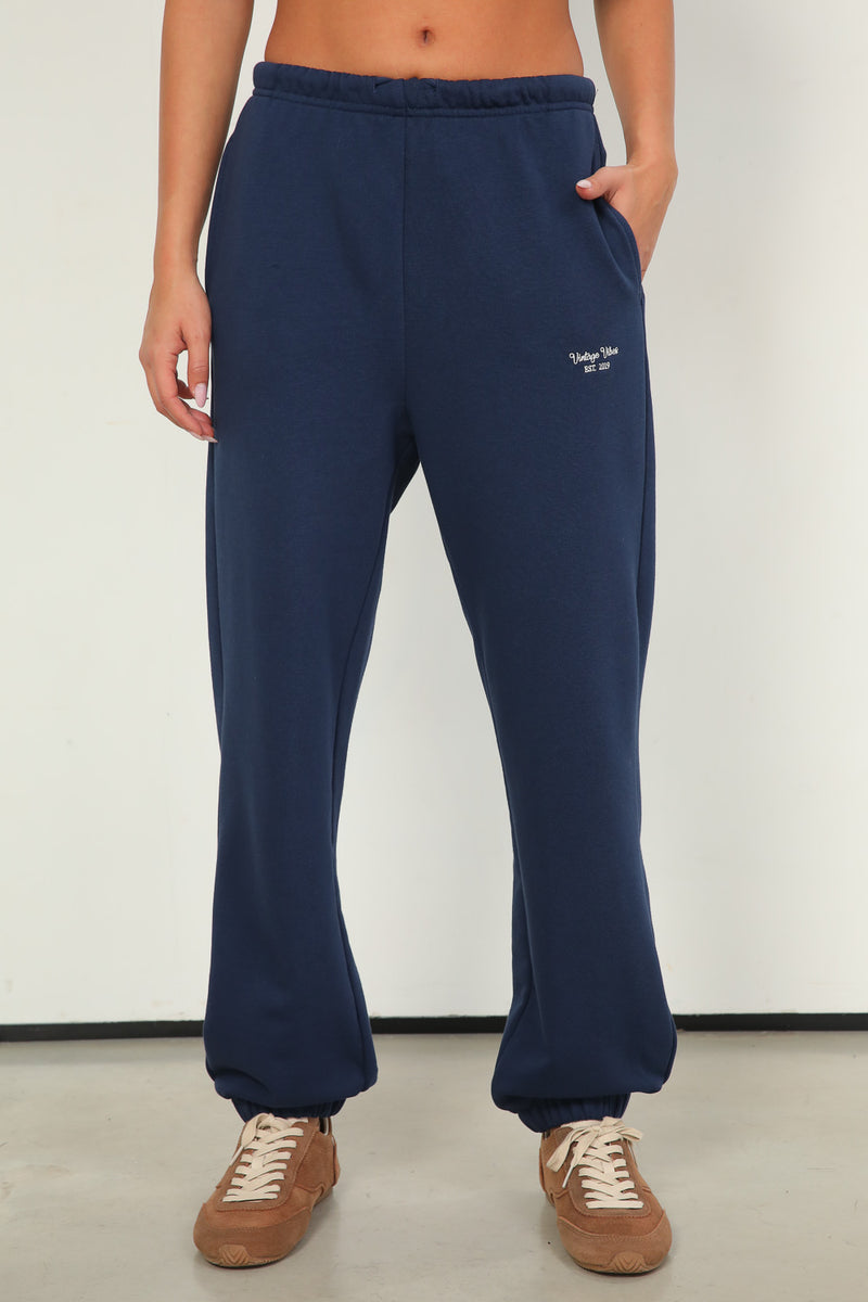 מכנס פוטר מבד רך ונעים עם מנג'ט גומי במותן ובסיומת, בשילוב רקמת וינטג וויב בחזית,