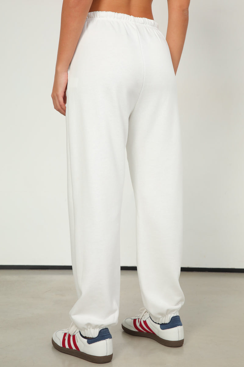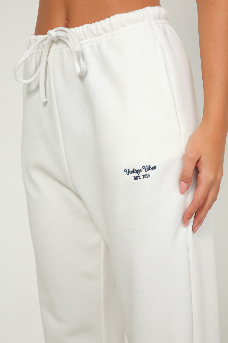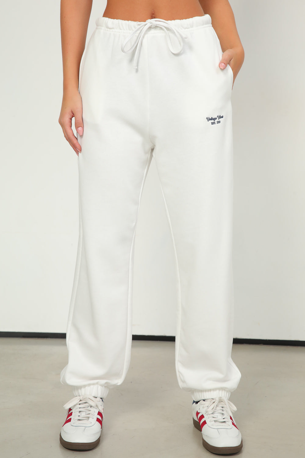 מכנס פוטר מבד רך ונעים עם מנג'ט גומי במותן ובסיומת, בשילוב רקמת וינטג וויב בחזית,