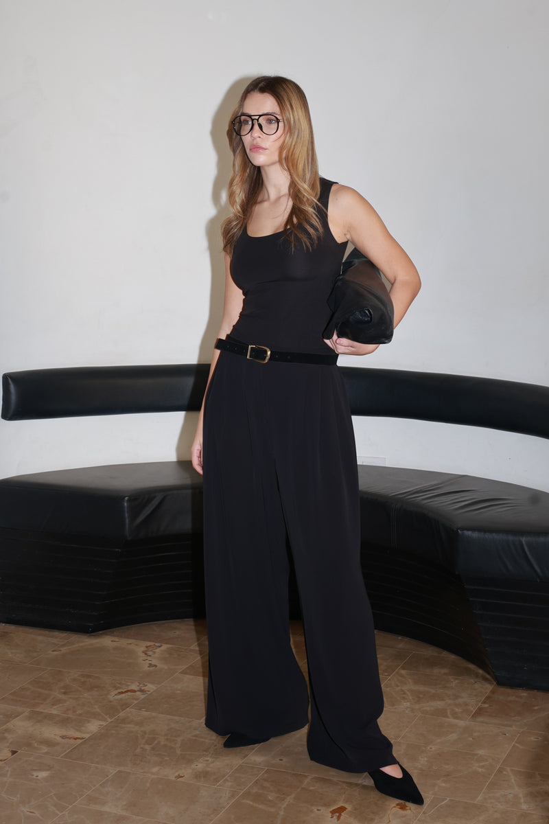 עשויים בד רך ונעים בגוון שחור קלאסי, עם נפילה טבעית שמדגישה תנועה וזרימה.