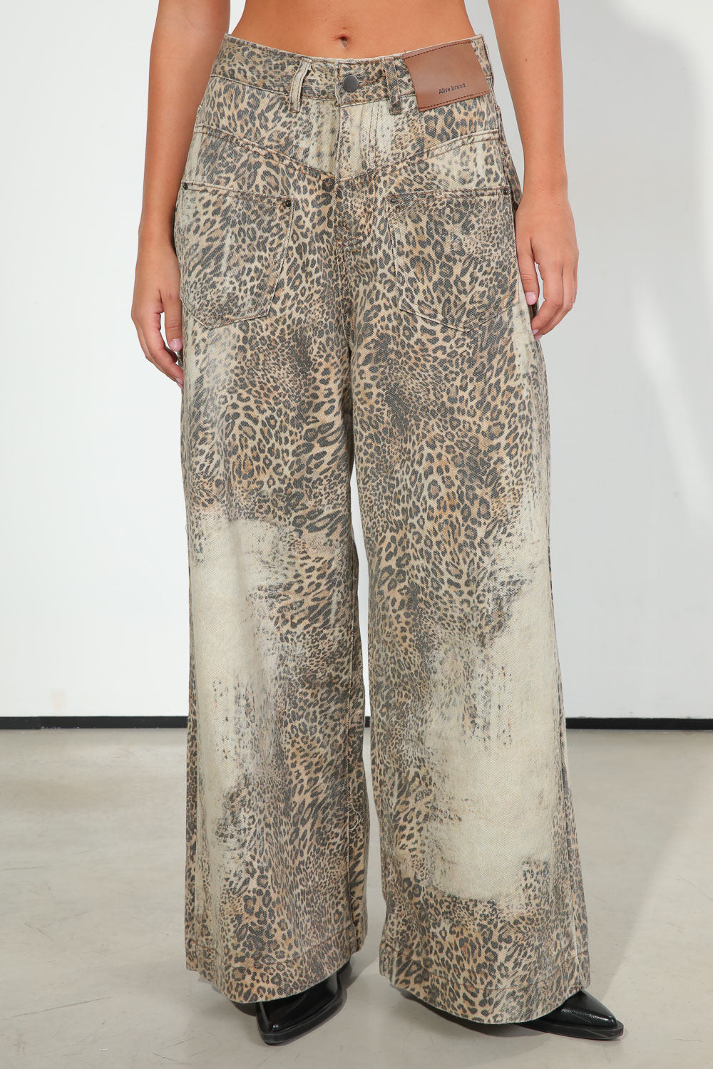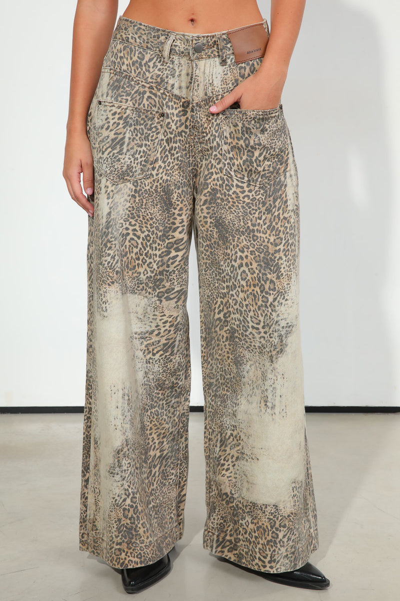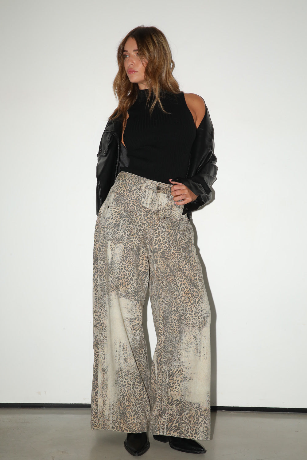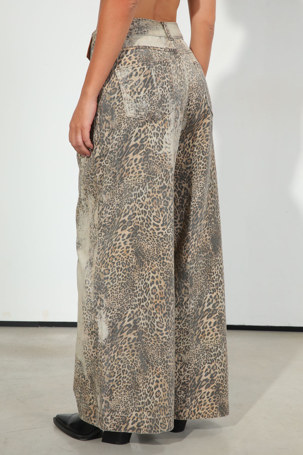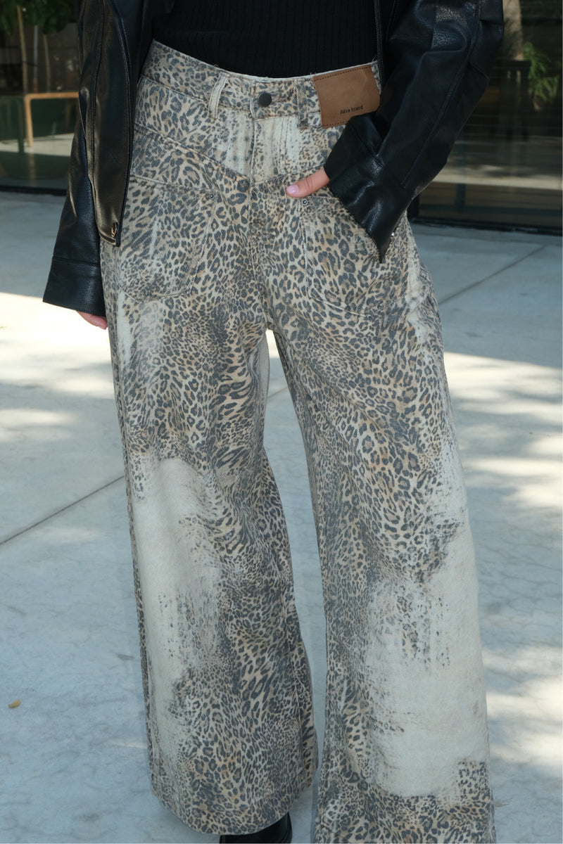 מכנס בגזרה רחבה, דפוס מנומר היסטרי בשילוב שיפשופים, כזה שאת חייבת אצלך בארון!