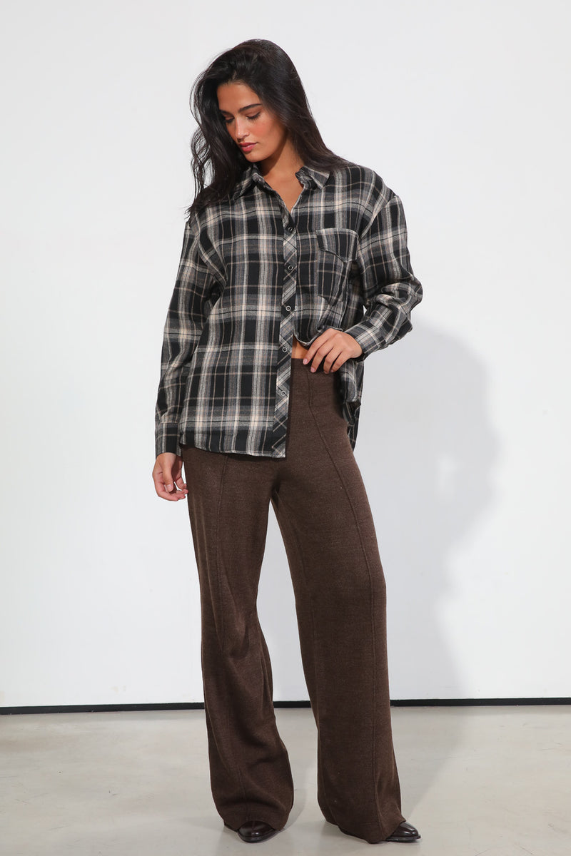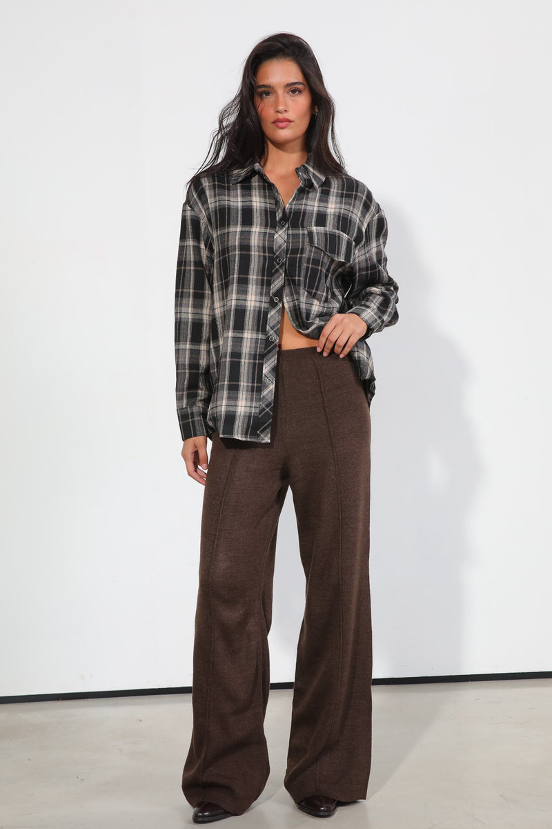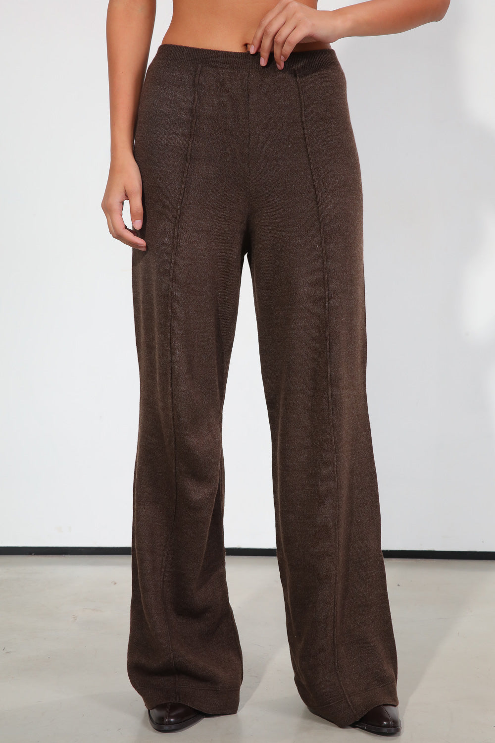 מכנס סריג קלאסי בגזרה רחבה עם מנג'ט גומי במותן,