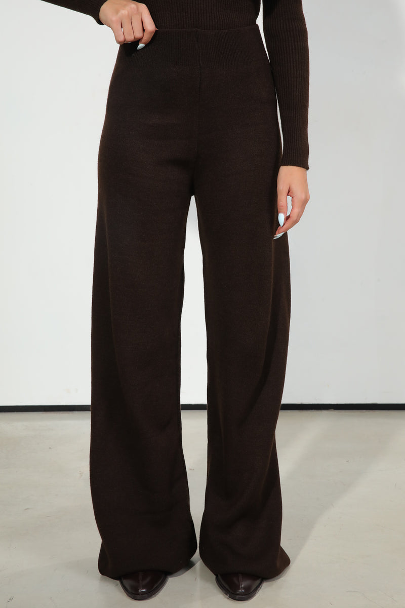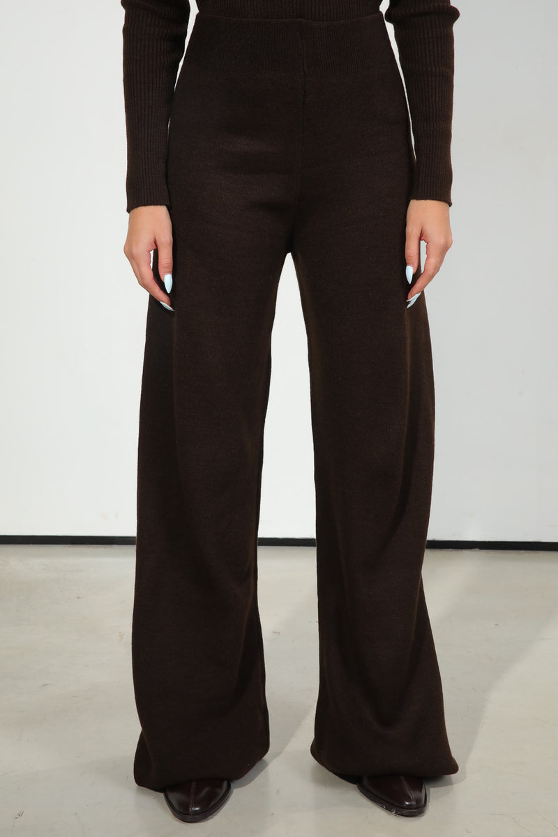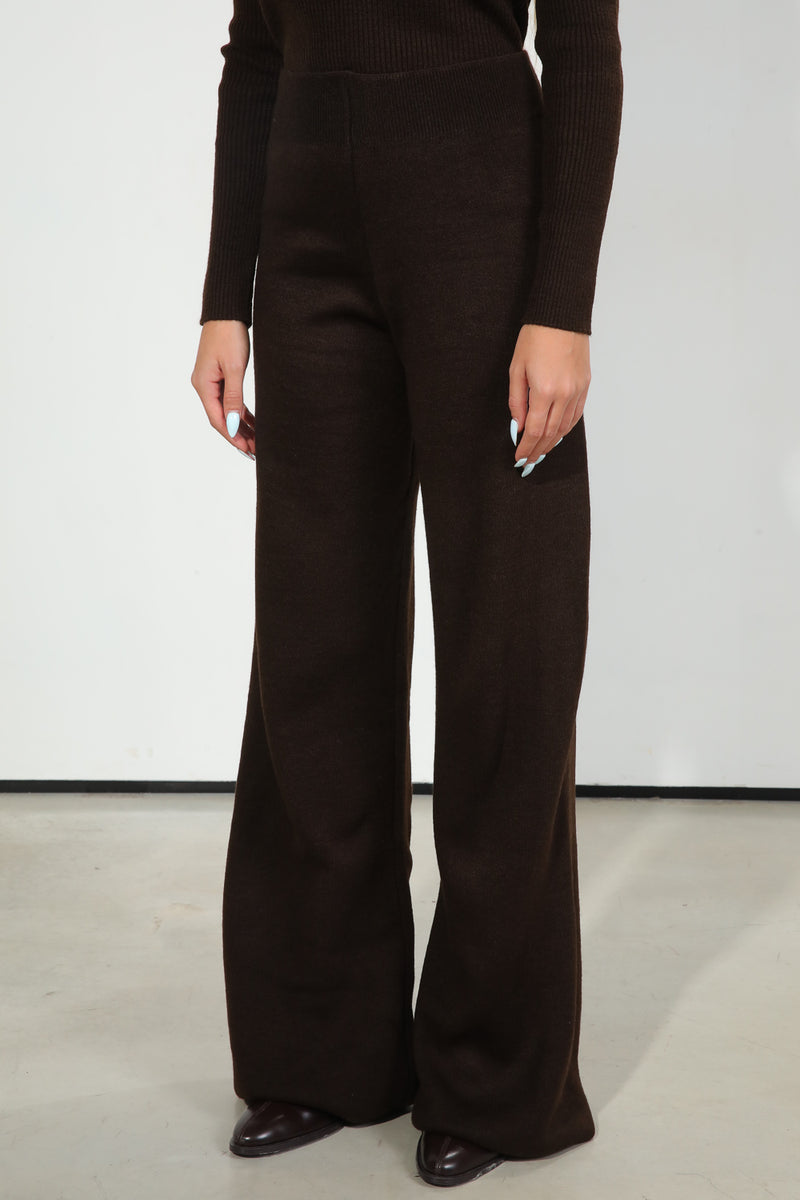 מכנס סריג בגזרה ישרה עם מנג'ט גומי במותן,