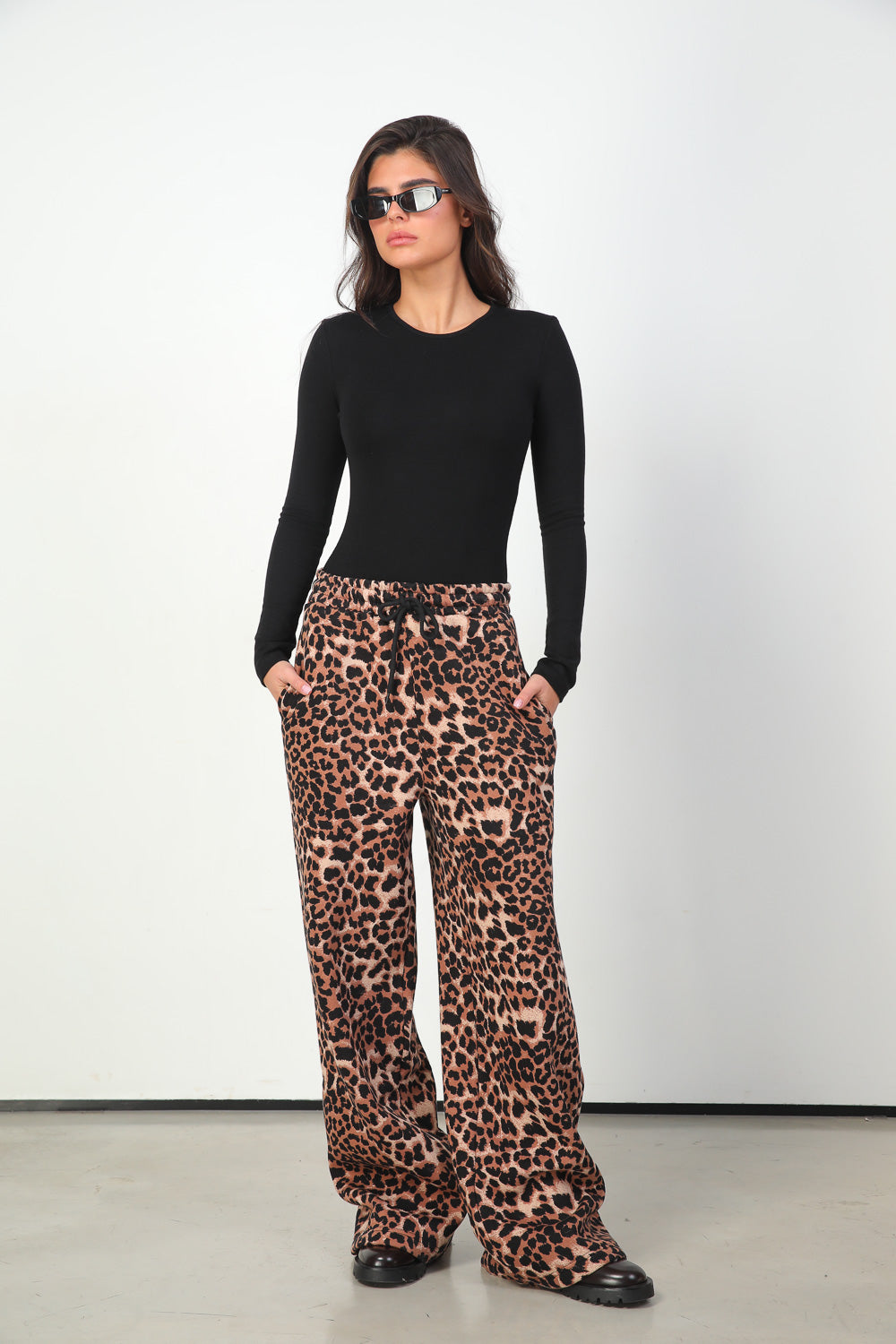 מכנס פוטר בגזרה רחבה עם פרינט מנומר אול אובר.