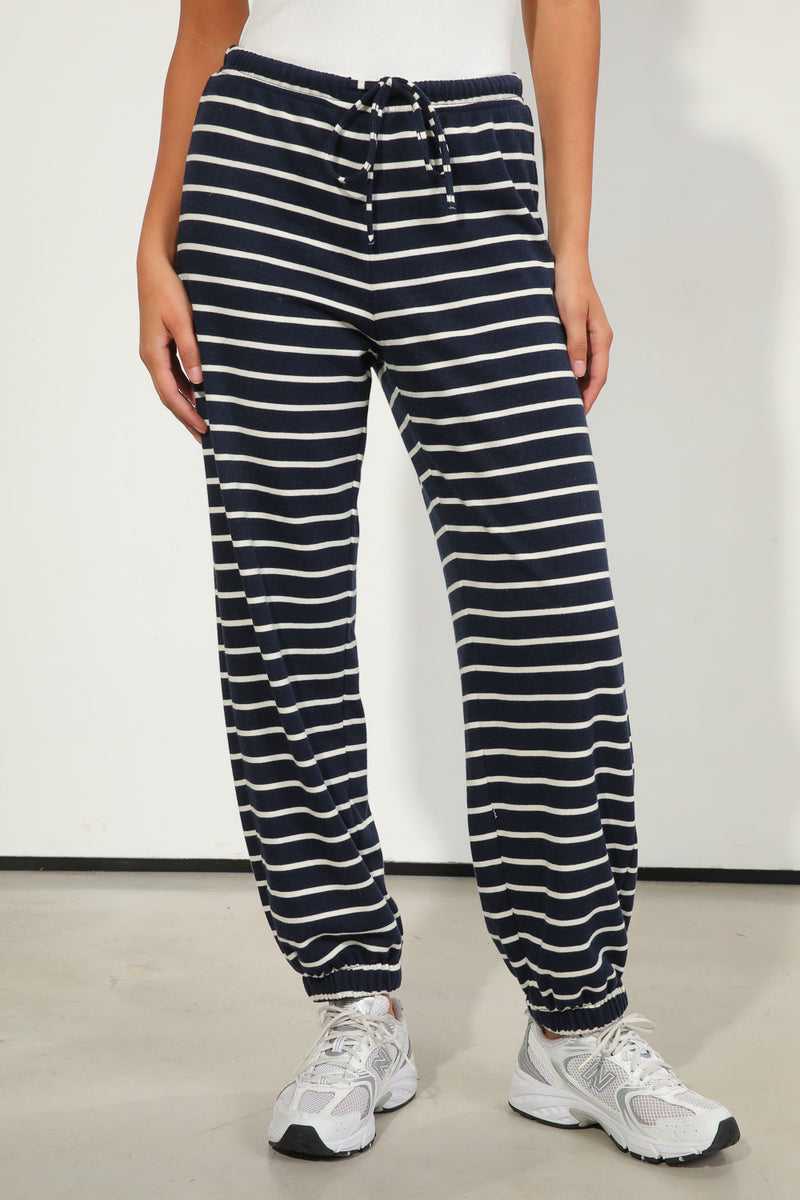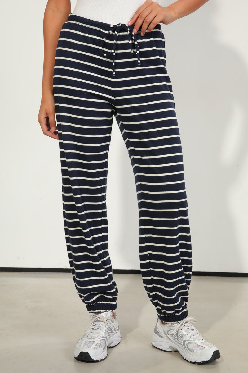 מכנס פסים בייסיק מבד רך ונעים עם מנגט גומי במותן ובסיומת,