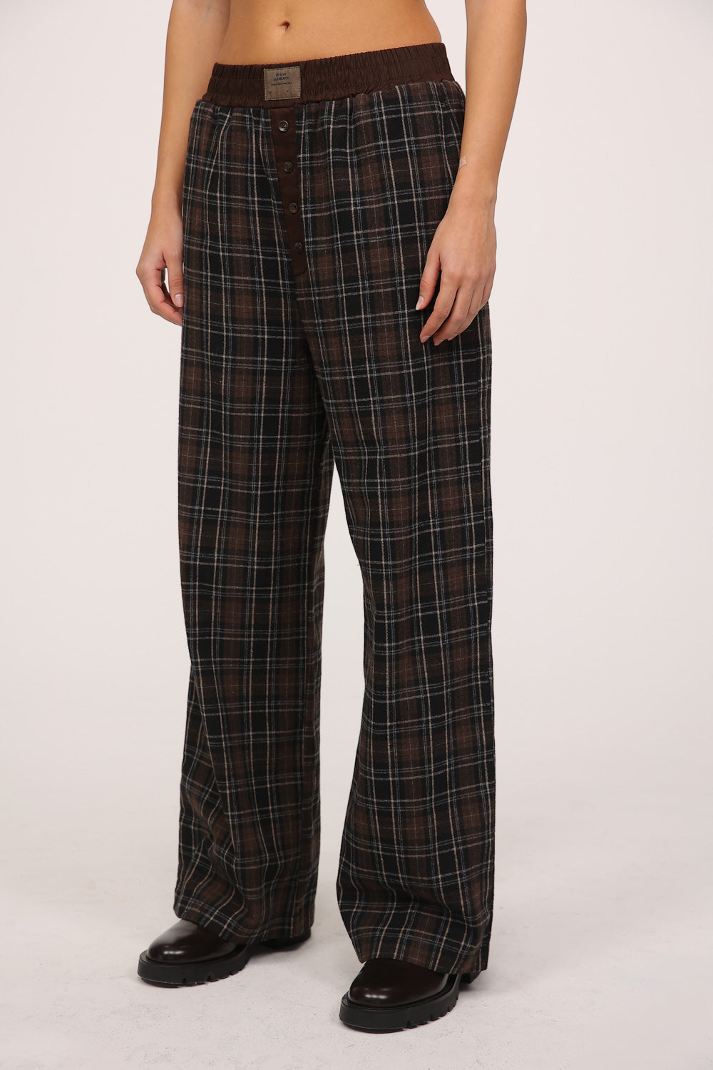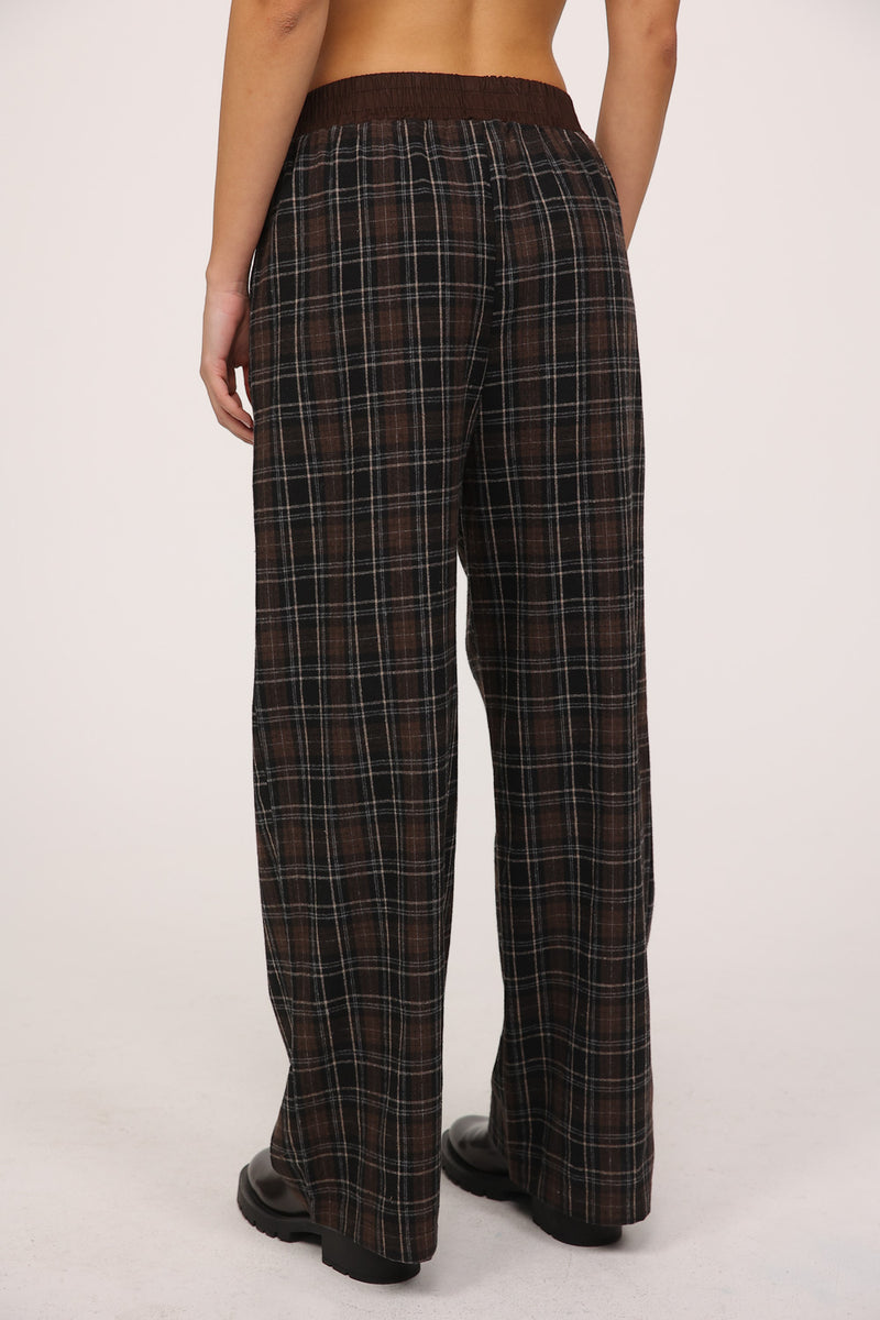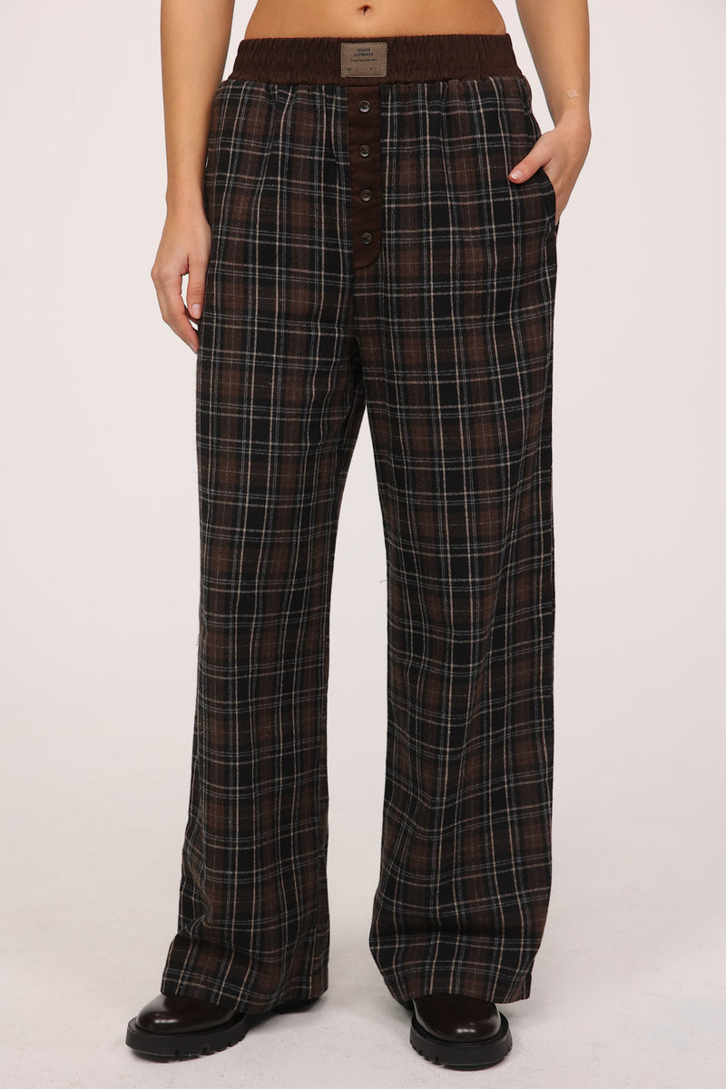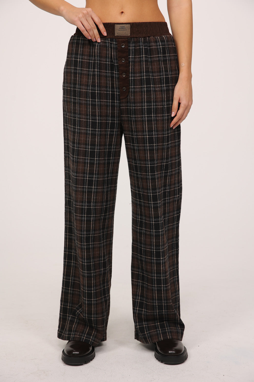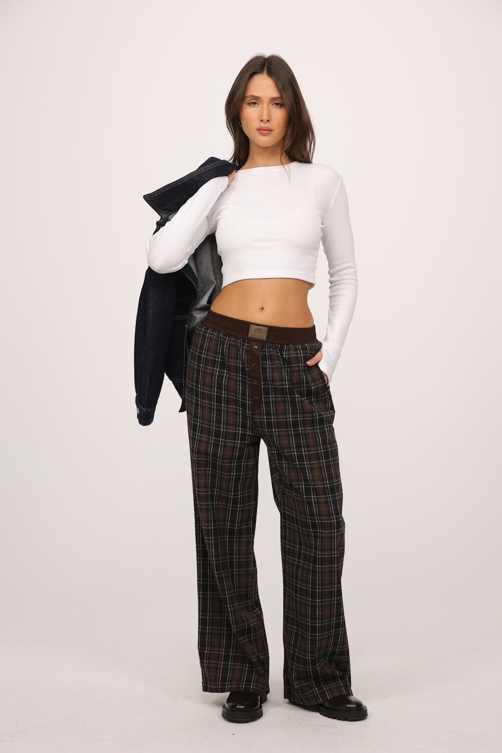 מכנס בגזרה ישרה ונינוחה עם הדפס משבצות עדין למראה קלאסי עם טוויסט מודרני,