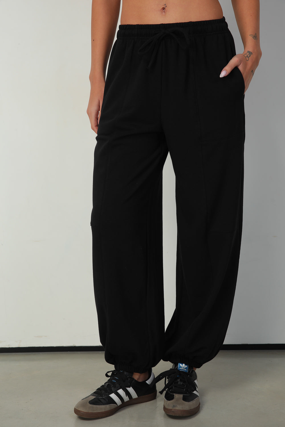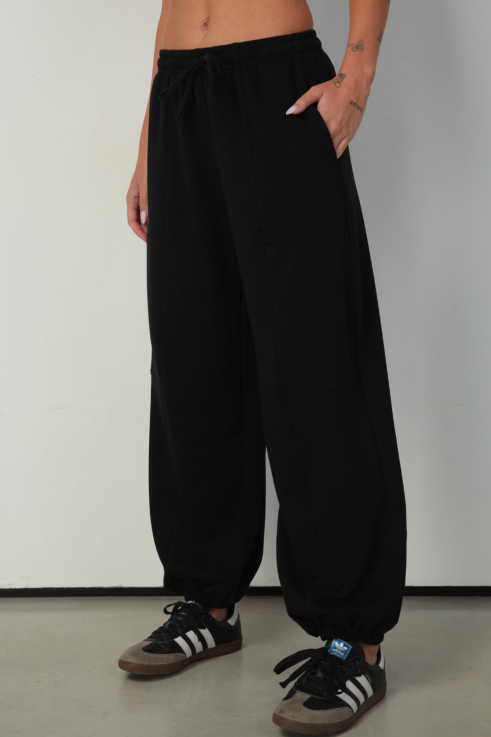 מכנס בגזרה רחבה עם מנג'ט גומי במותן ובסיומת, כזה שאת חייבת אצלך בארון!