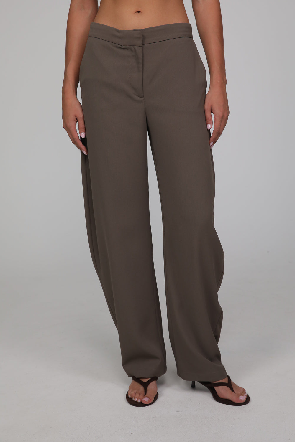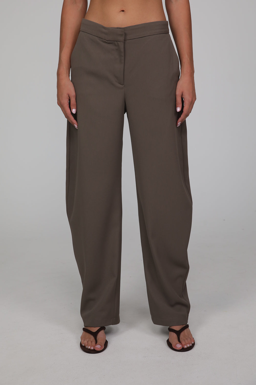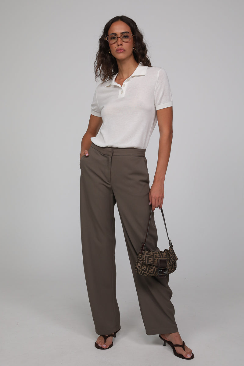 מכנסיים בגזרה ישרה ונשפכת עם מראה אלגנטי ונינוח.