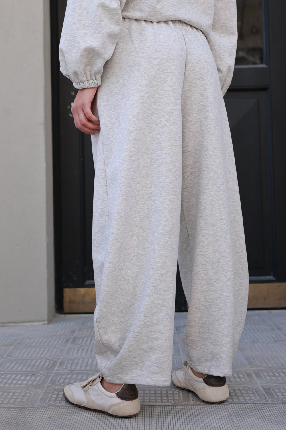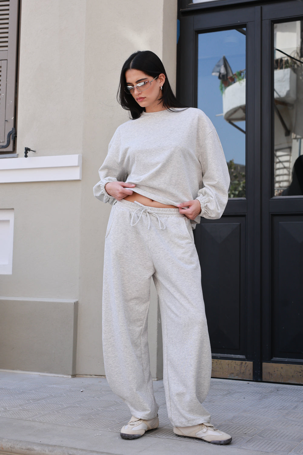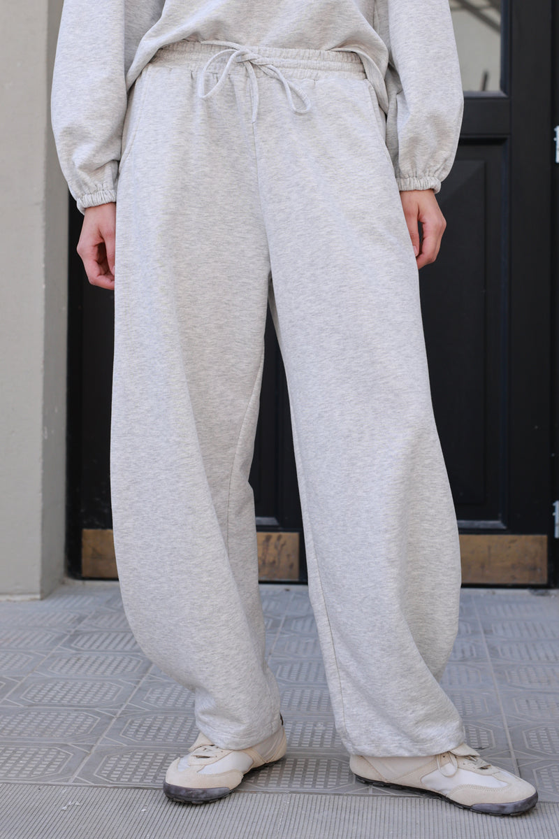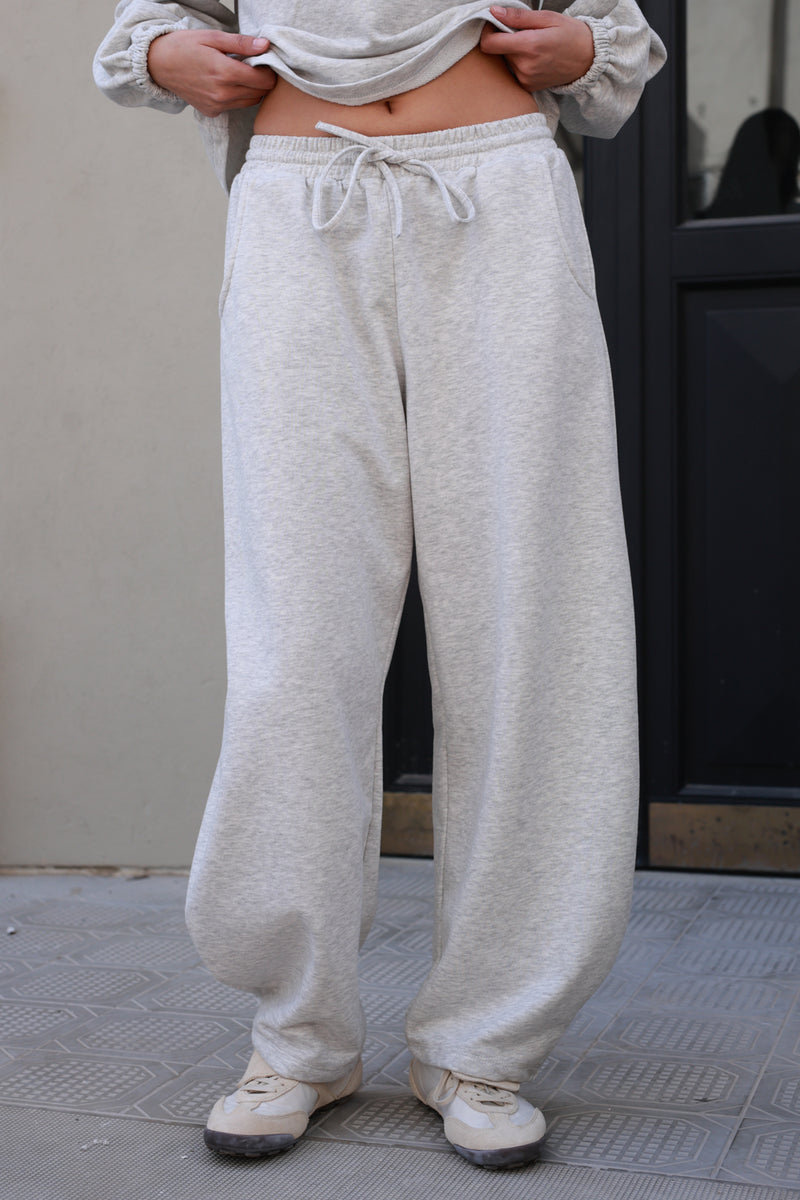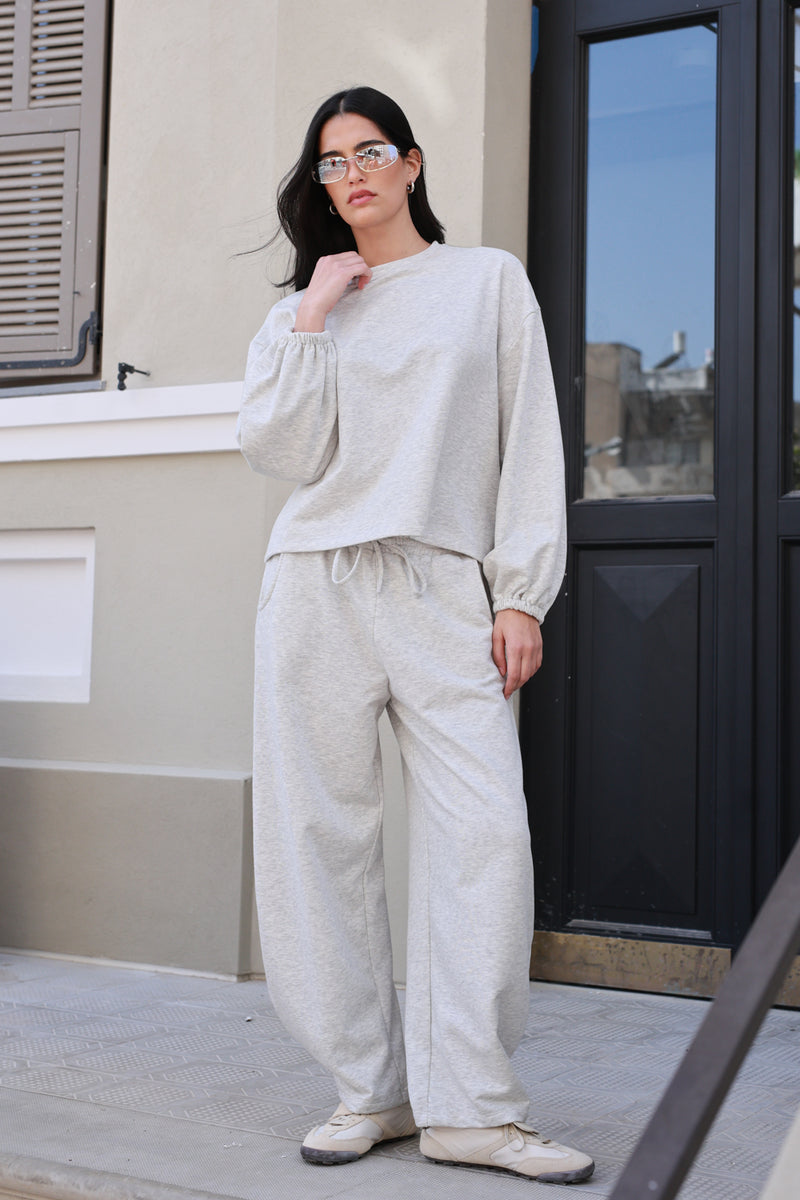 עשויים בד רך ונעים בגוון אפור, עם נפילה טבעית שמדגישה נוחות ותנועה.