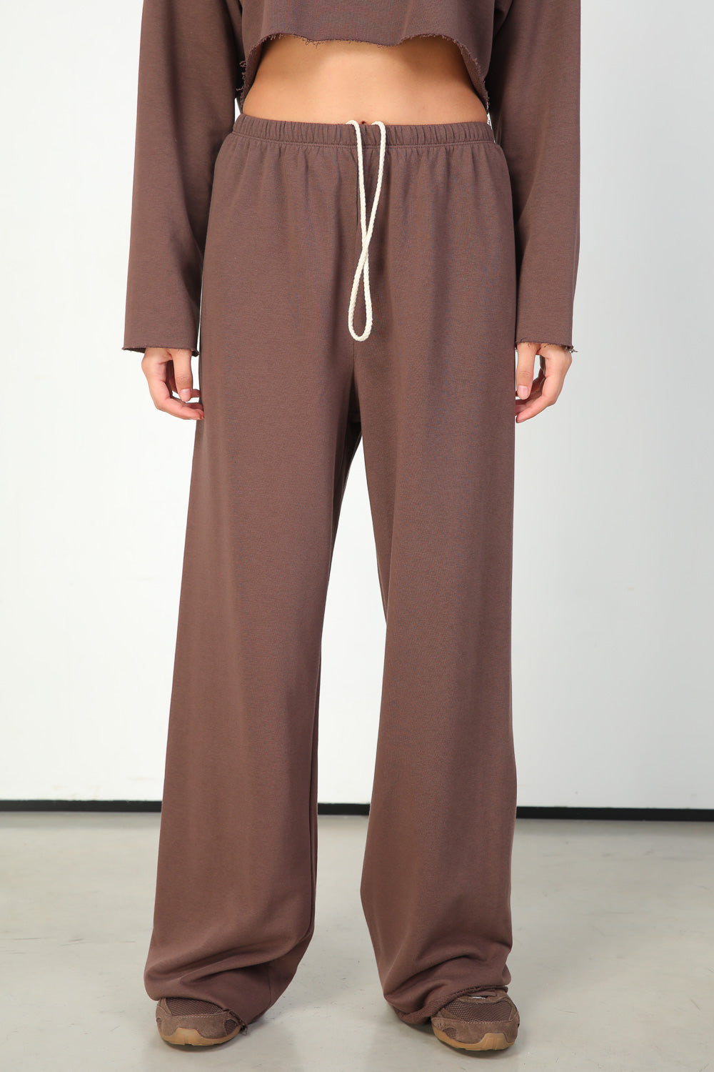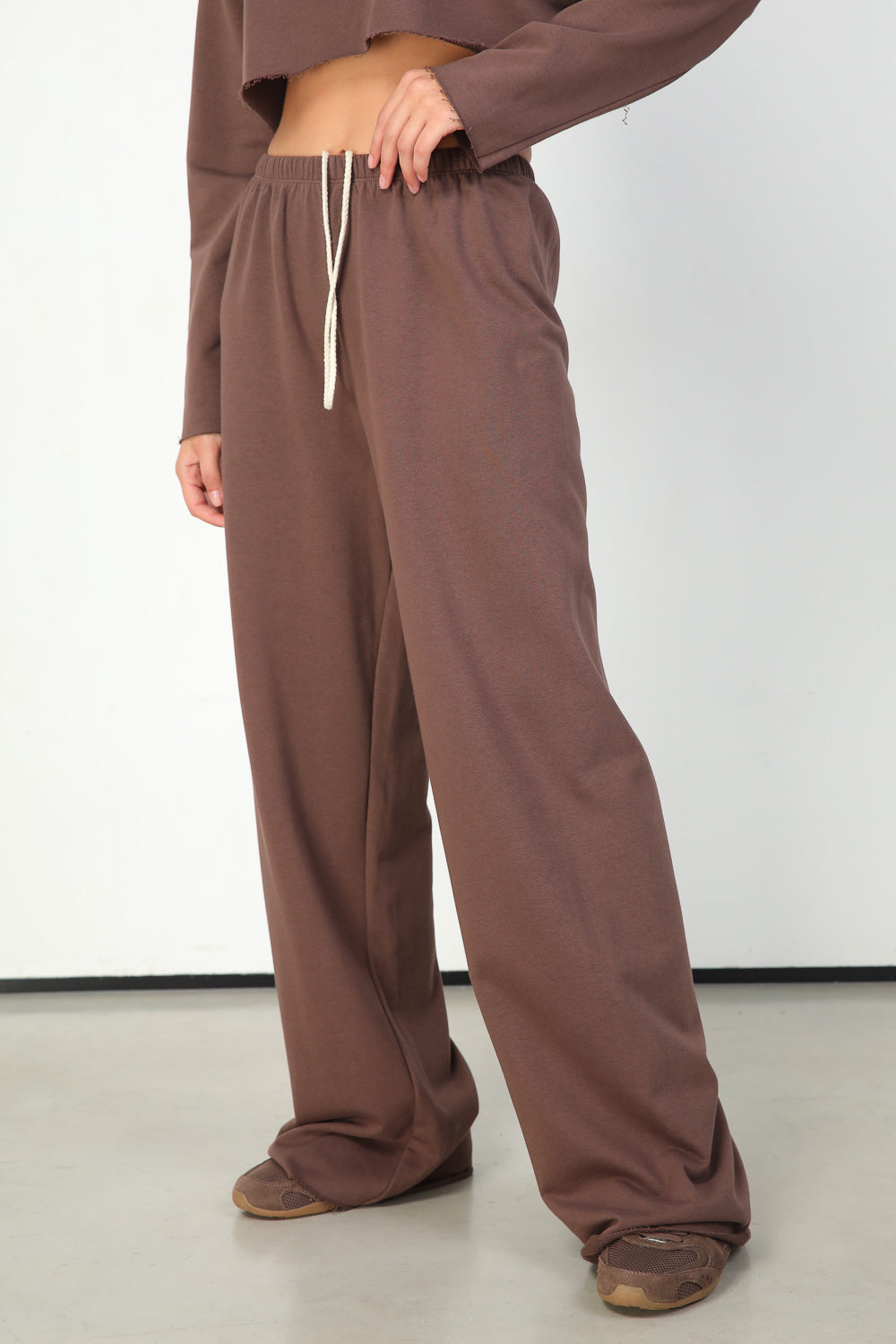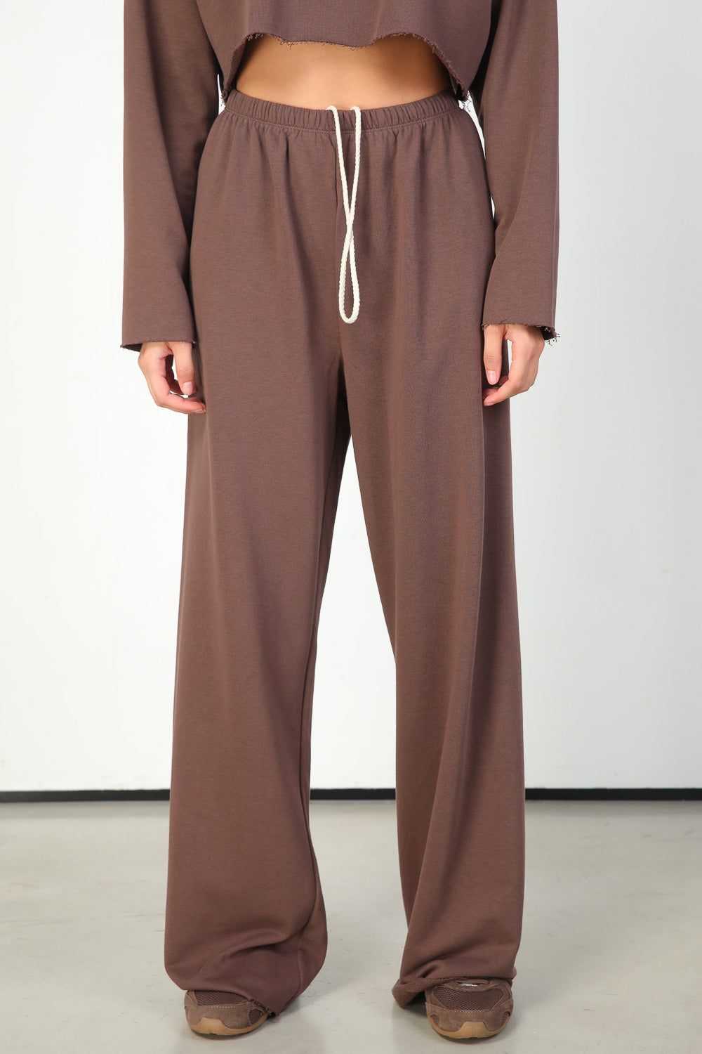 מכנס ארוך בגזרה רחבה עם מותן גבוהה וסגירת שרוך לקשירה.