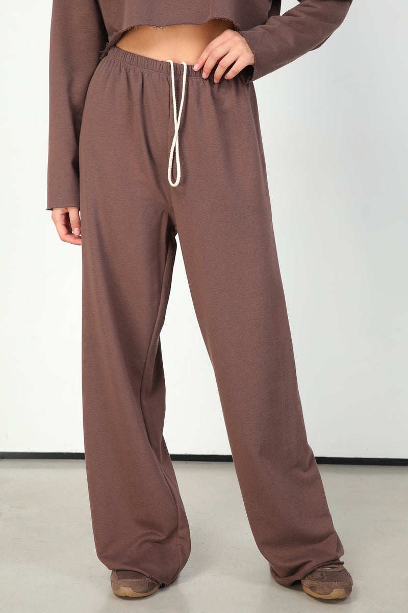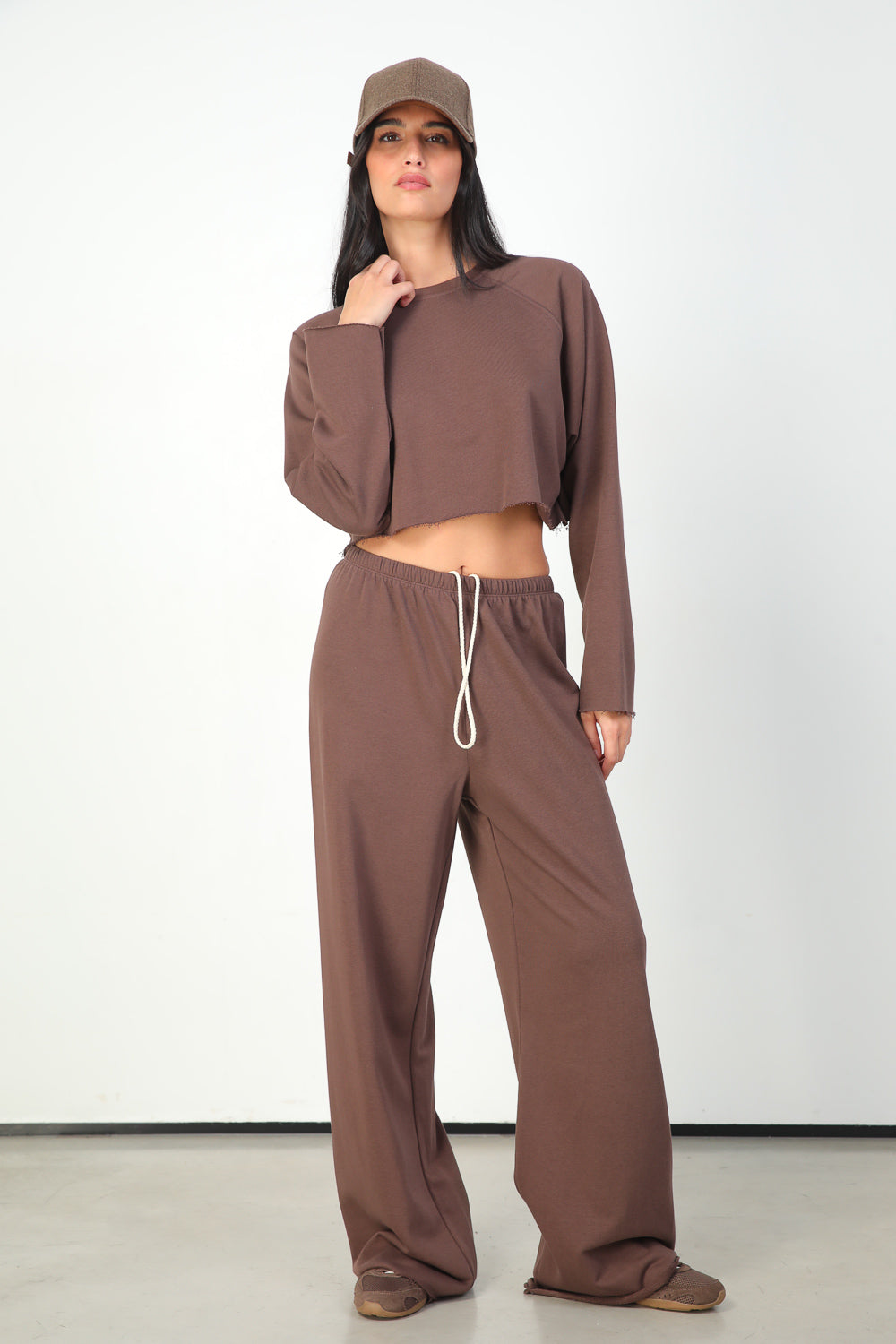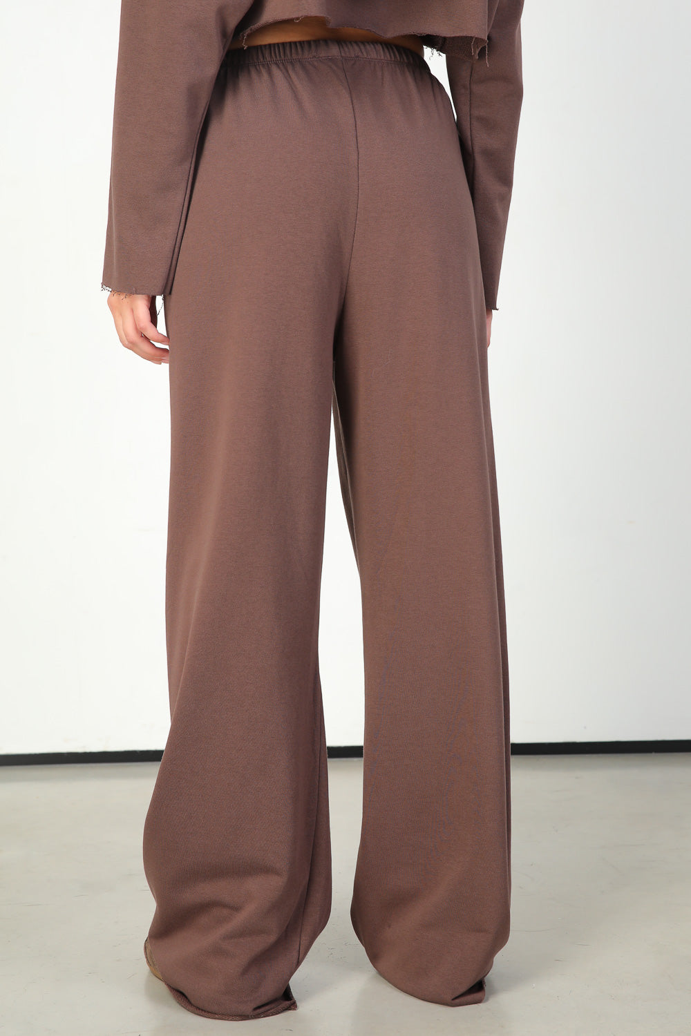 מכנס ארוך בגזרה רחבה עם מותן גבוהה וסגירת שרוך לקשירה.