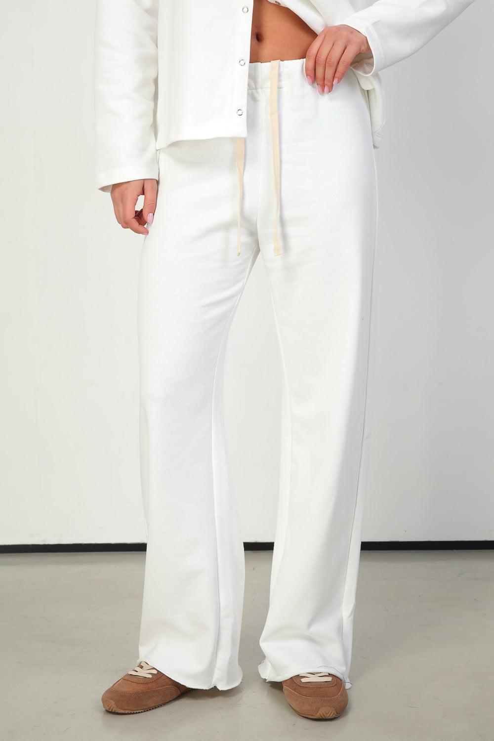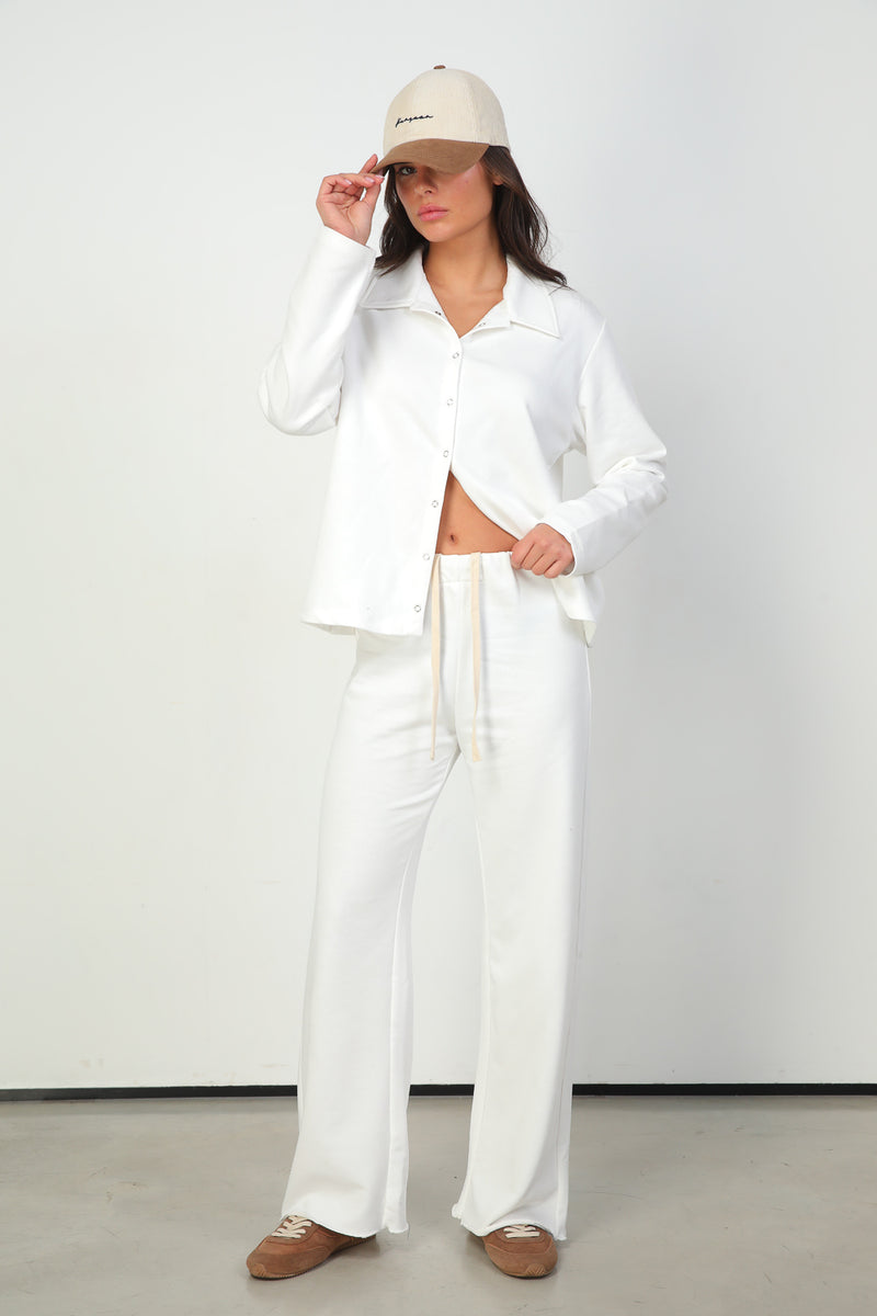 עשויים בד קליל בגוון אוף וויט, ומתאימים לסט אחיד עם החולצה או לשילוב יומיומי עם טי או סריג דק.