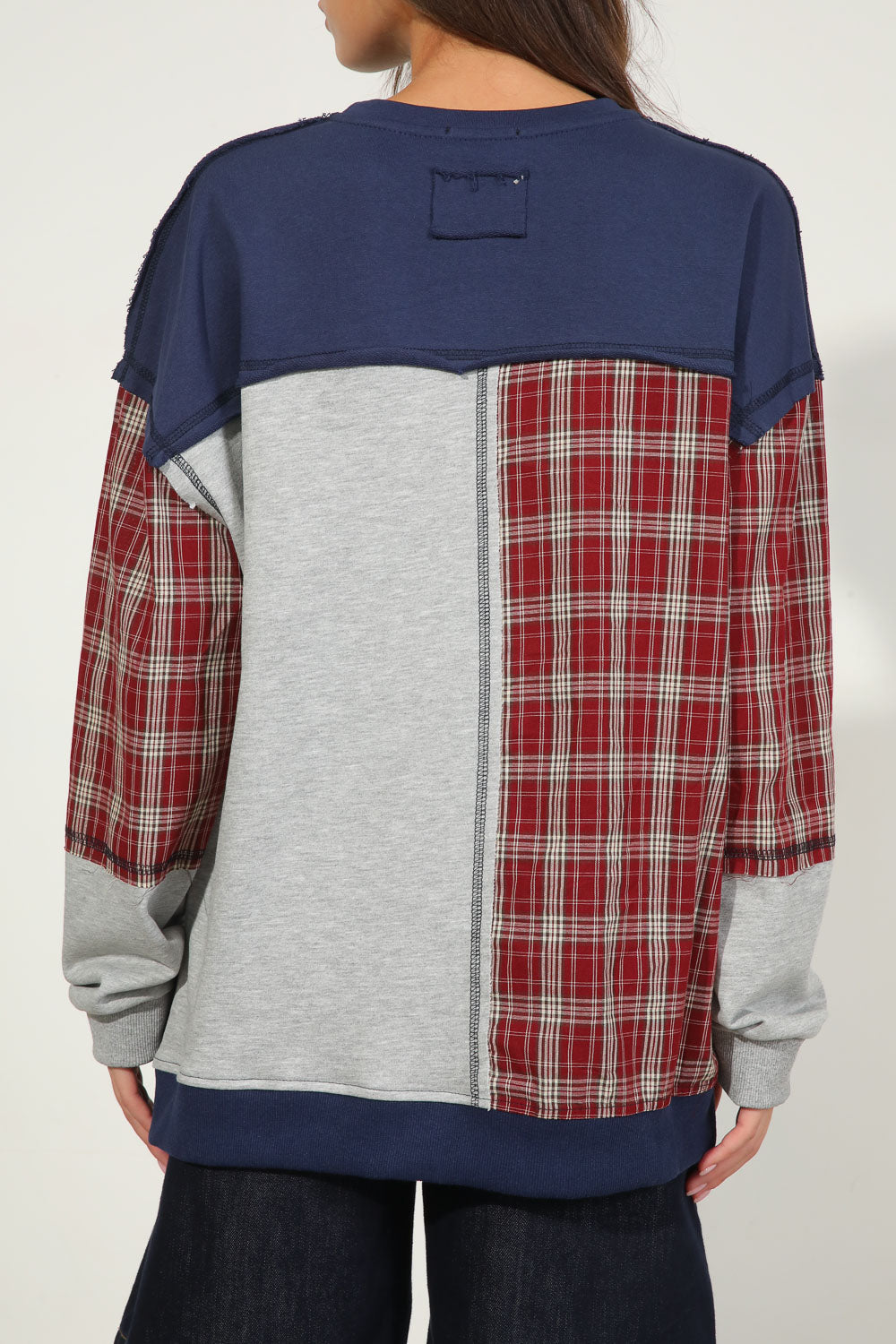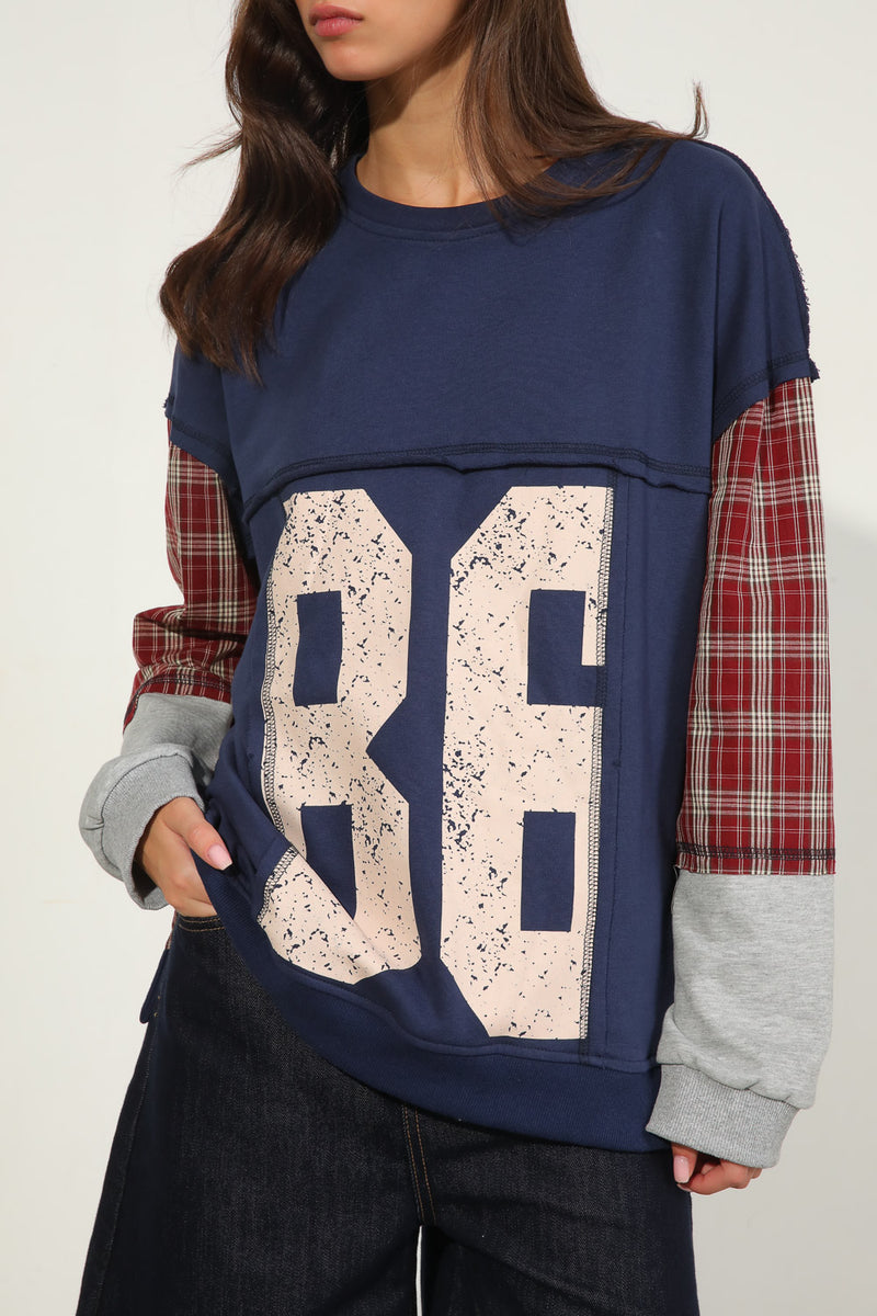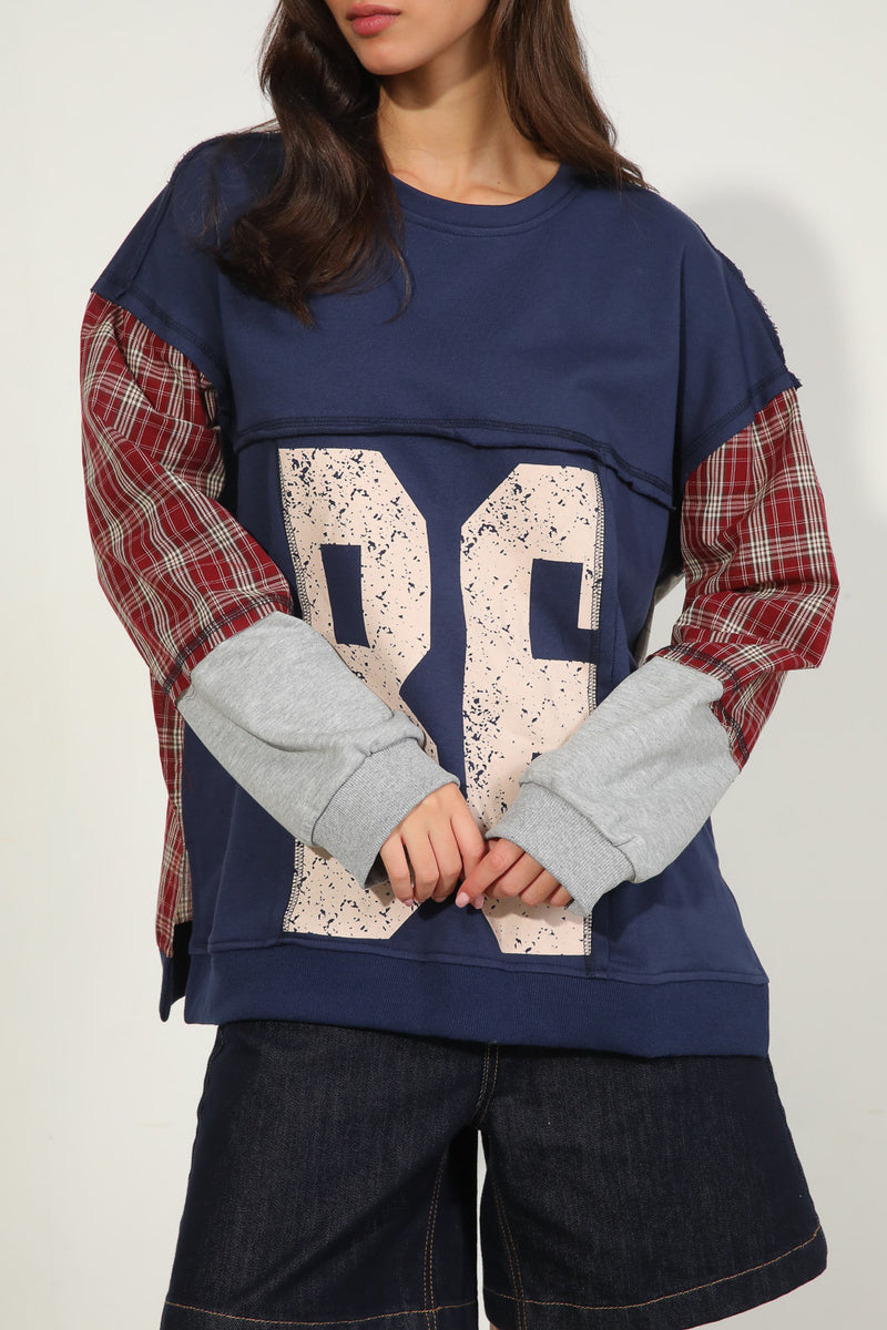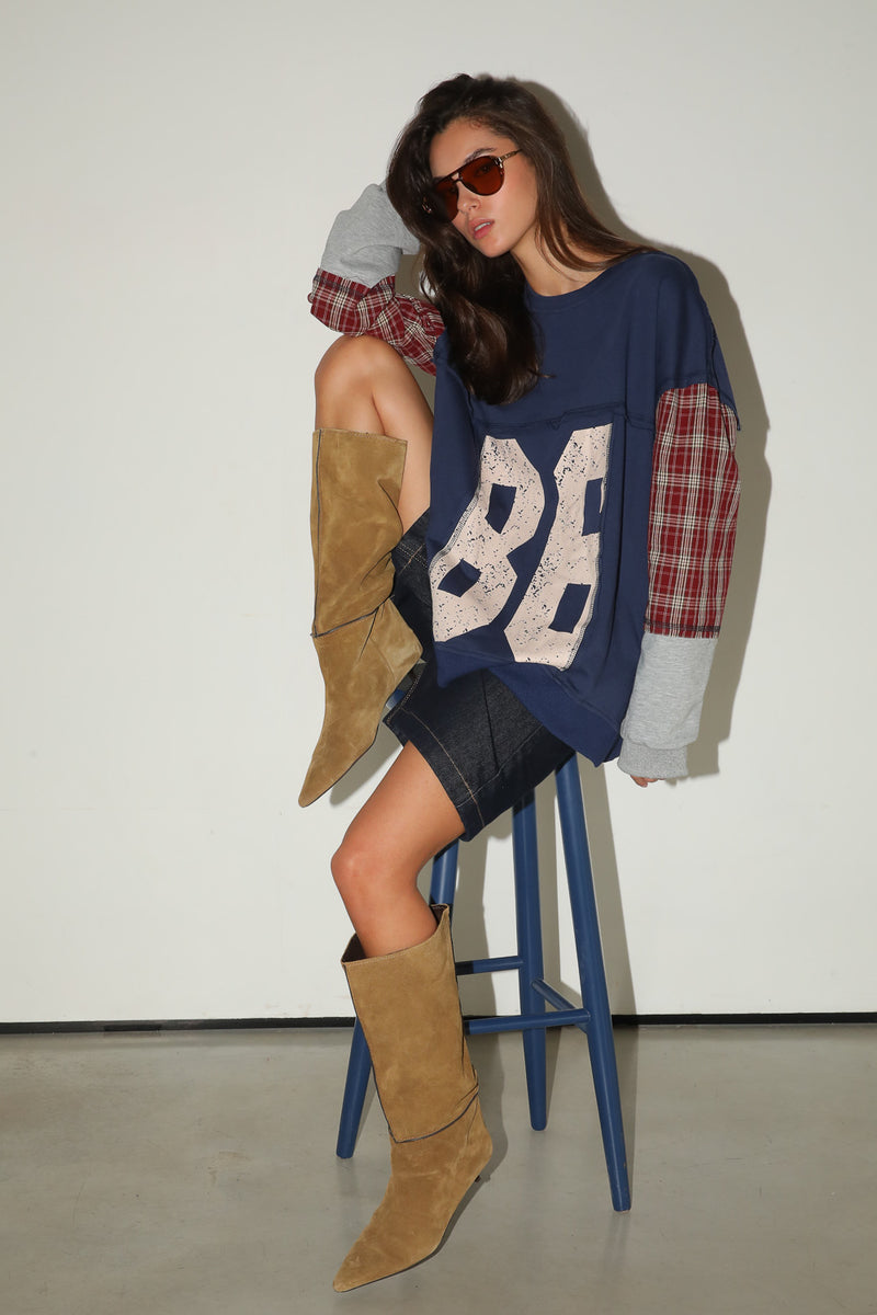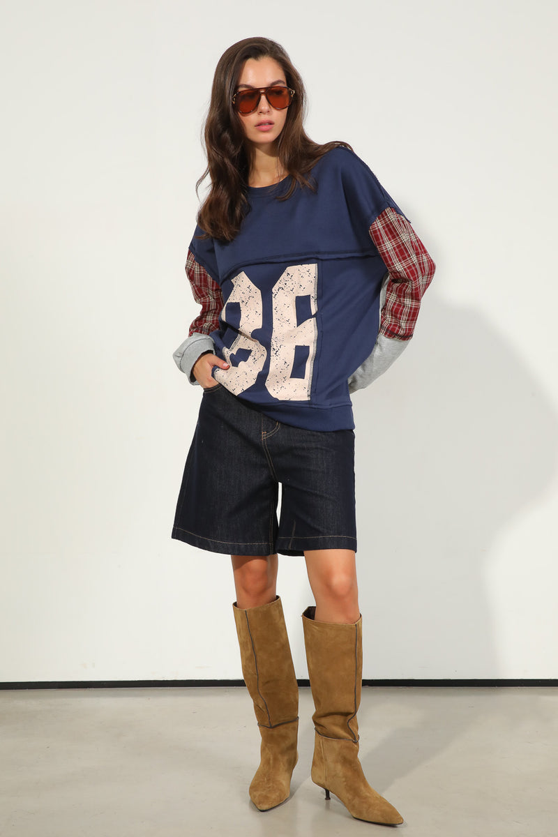 סווטשירט אוברסייז עם לוק קולג' מודרני ושיק יומיומי. שרוולים משובצים שמוסיפים טוויסט ייחודי ועיצוב מספר גדול בחזית שנותן וייב נונשלאנטי וצעיר. רך, נעים ומחבק כזה שבא לך ללבוש שוב ושוב עם ג'ינס, טייץ או מכנסי טרנינג.