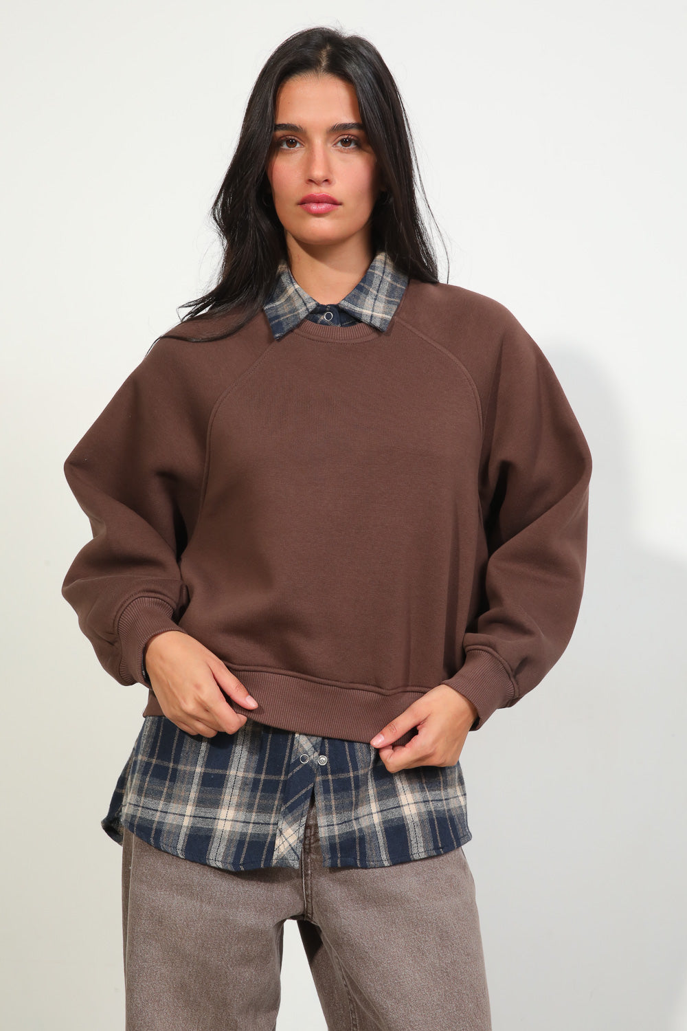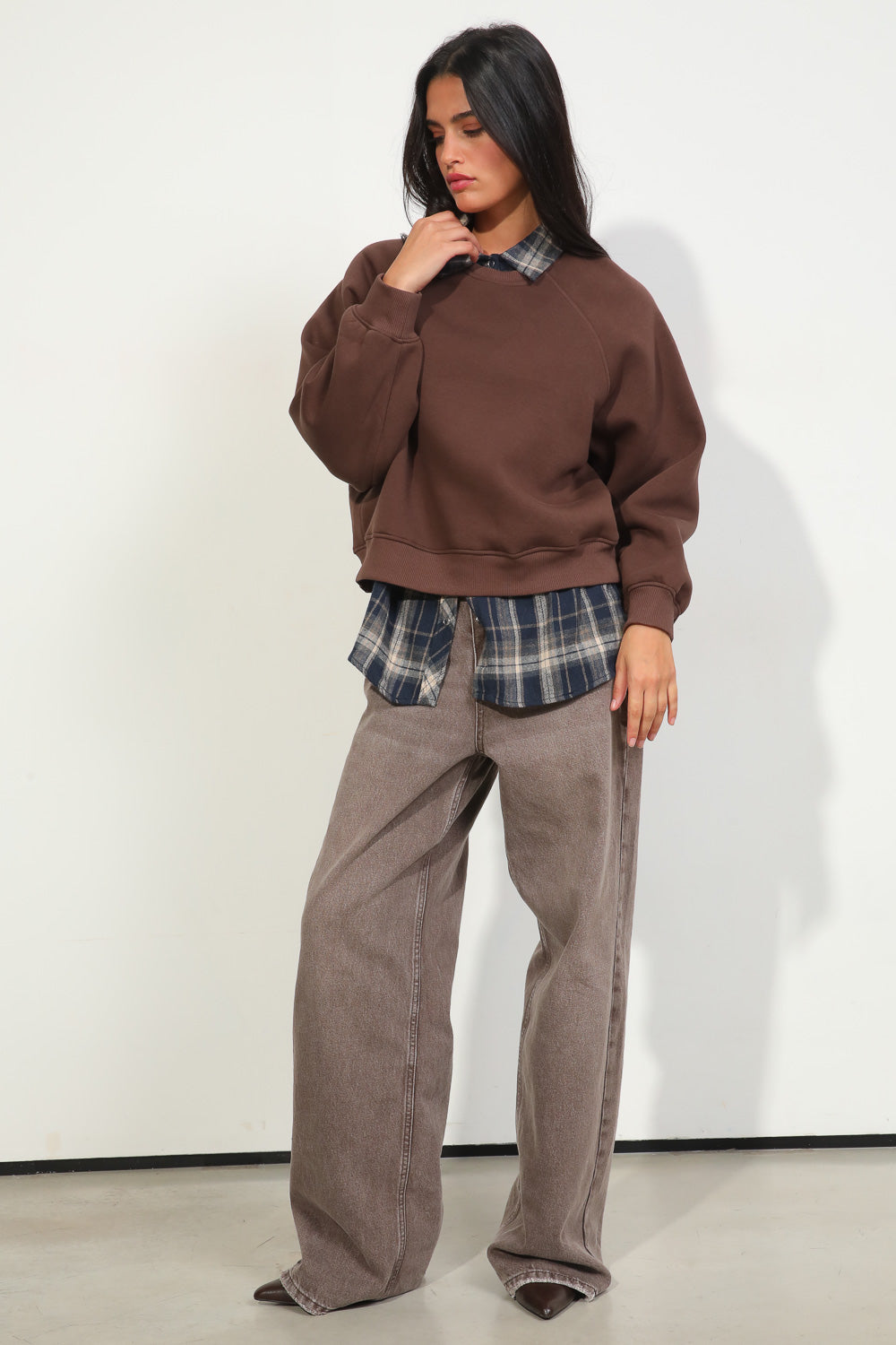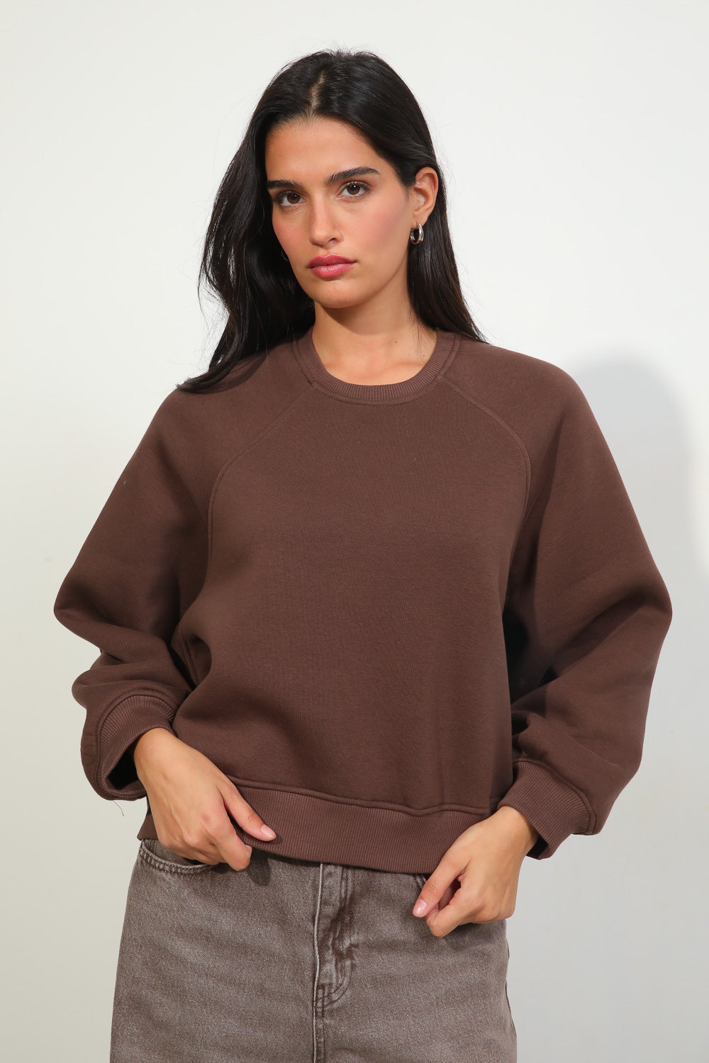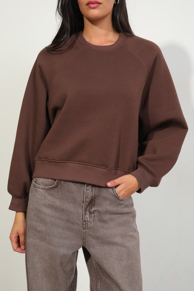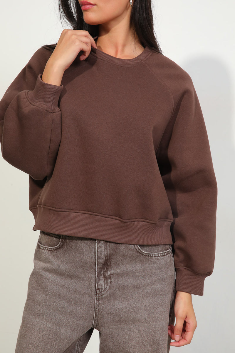 סווטשירט בייסיק בגזרת קרופ עם צווארון עגול, מבד רך ונעים.