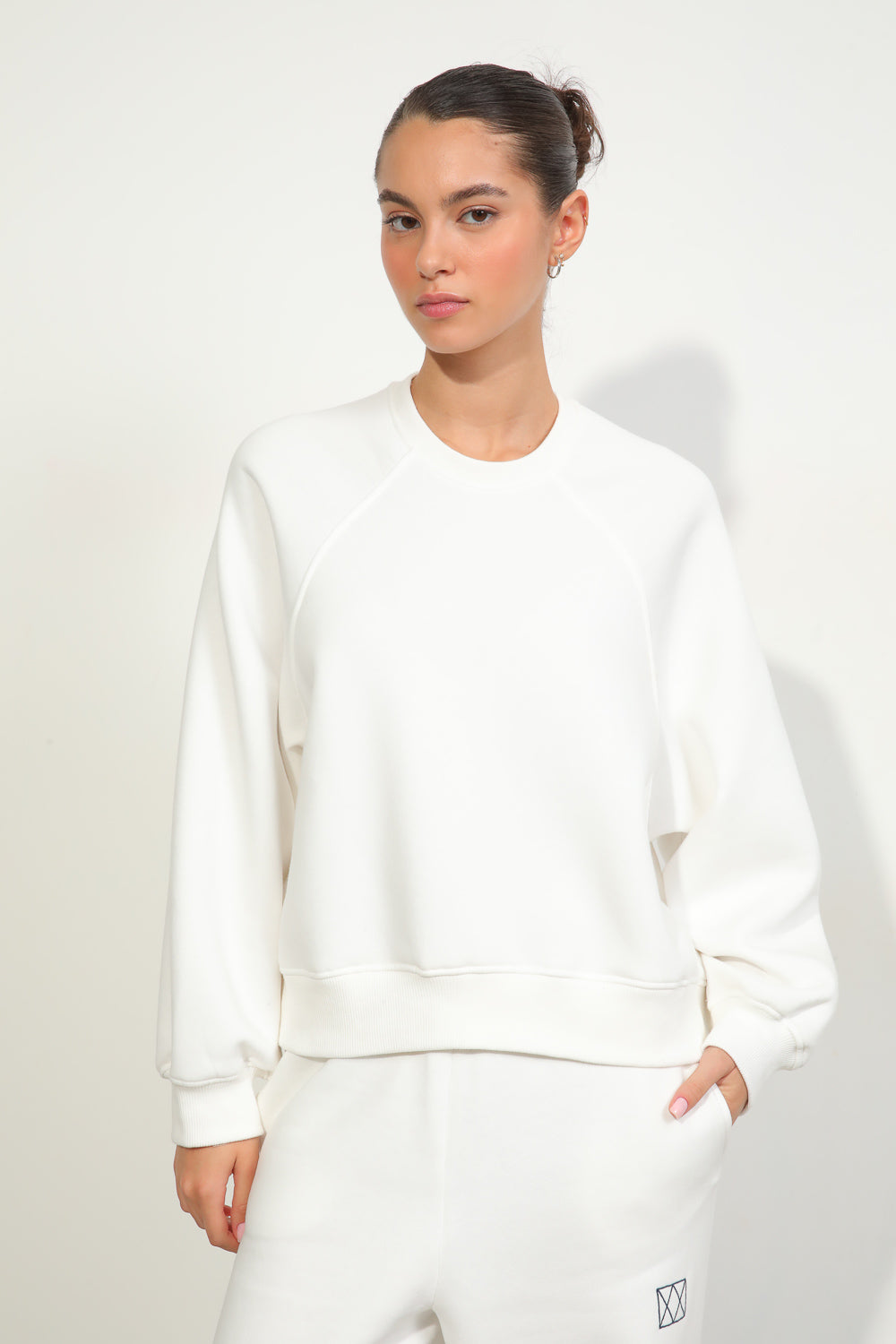 סווטשירט בייסיק בגזרת קרופ עם צווארון עגול, מבד רך ונעים.