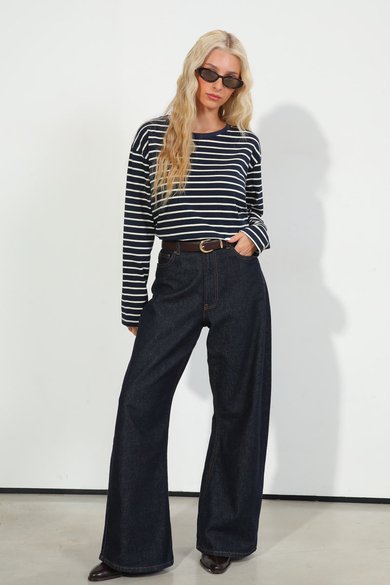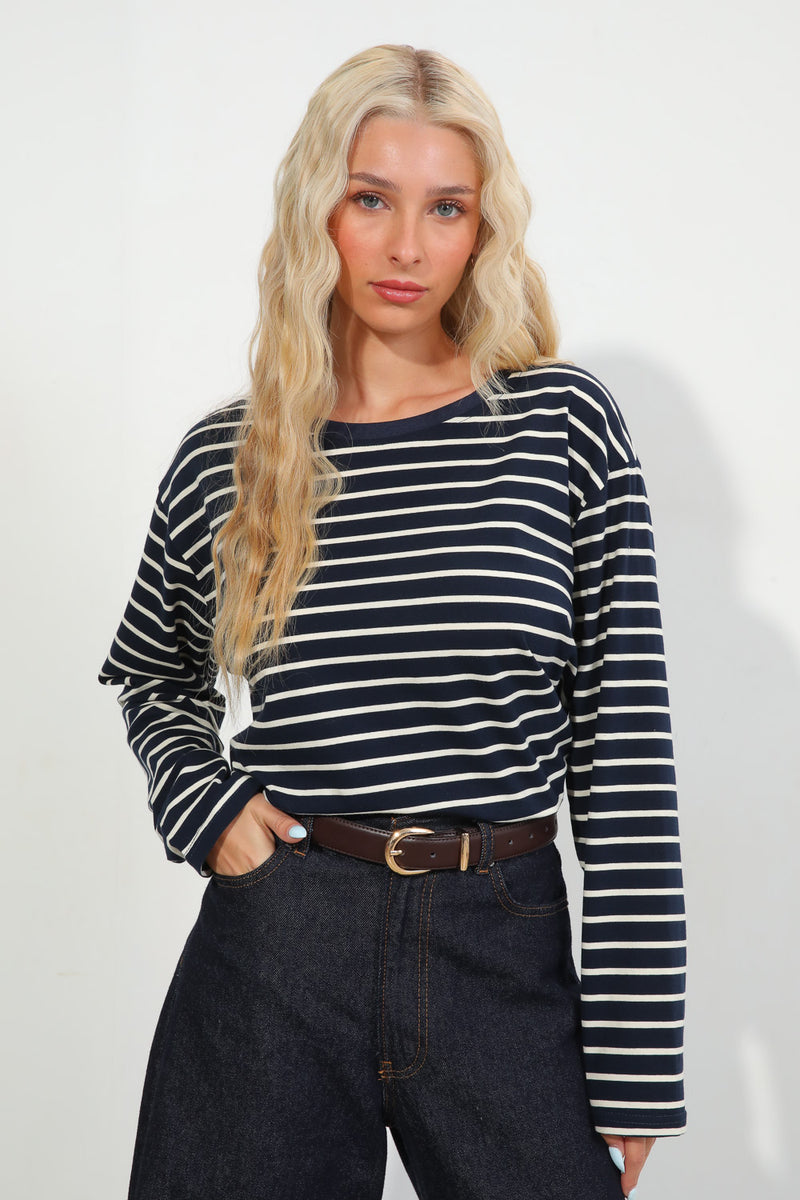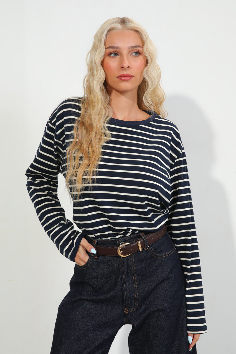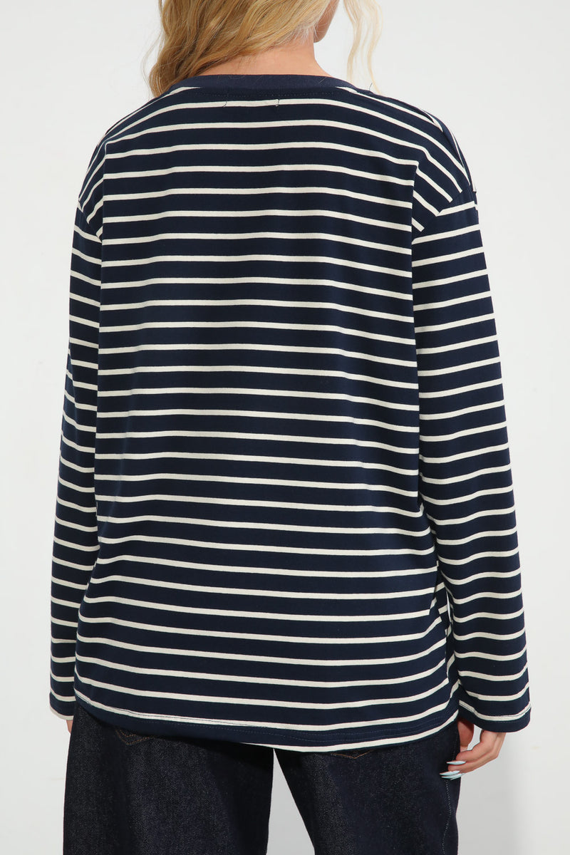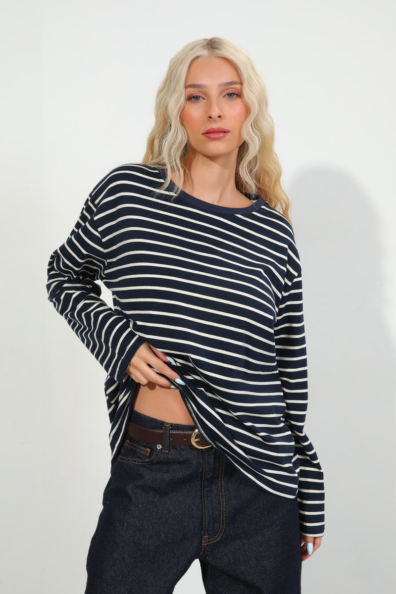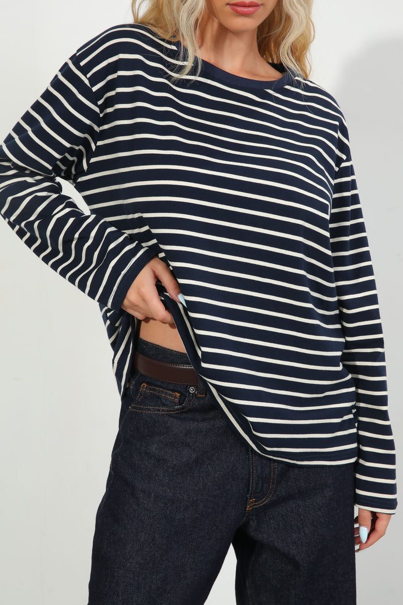 סווטשירט פסים מבד רך ונעים עם צווארון עגול,
