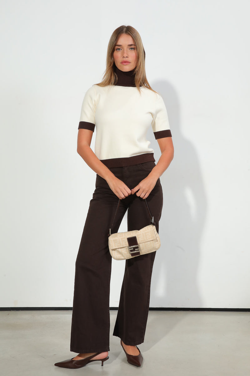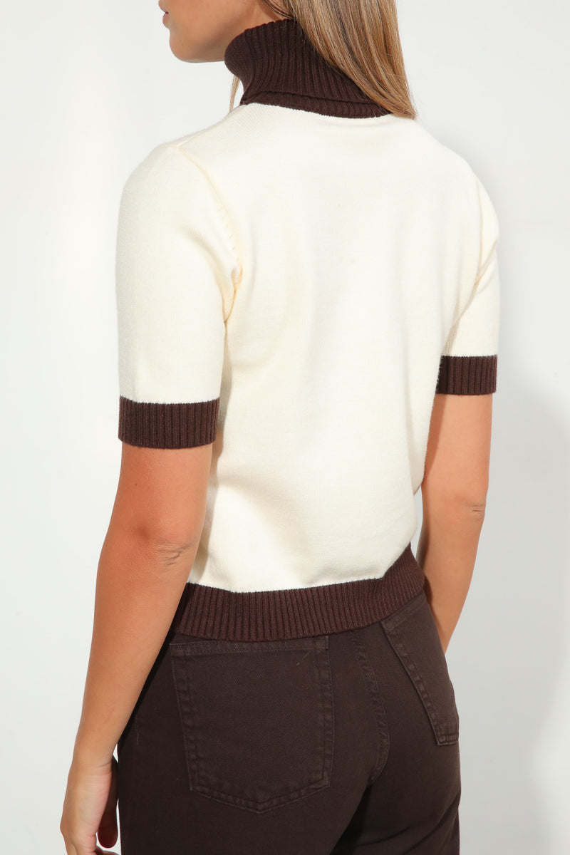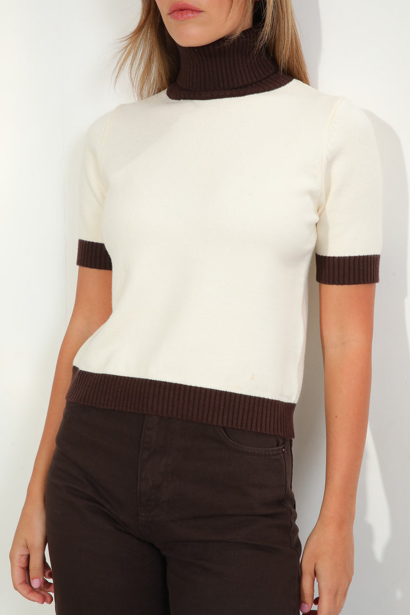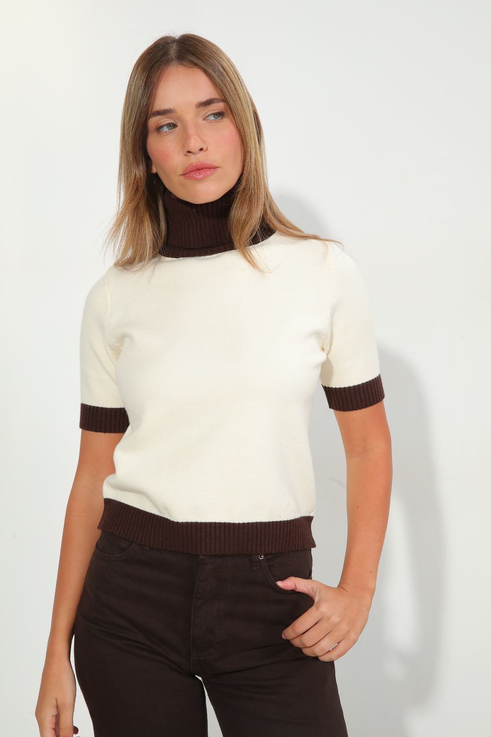 סריג ריפ קלאסי בגוון בז בהיר עם צווארון גולף,