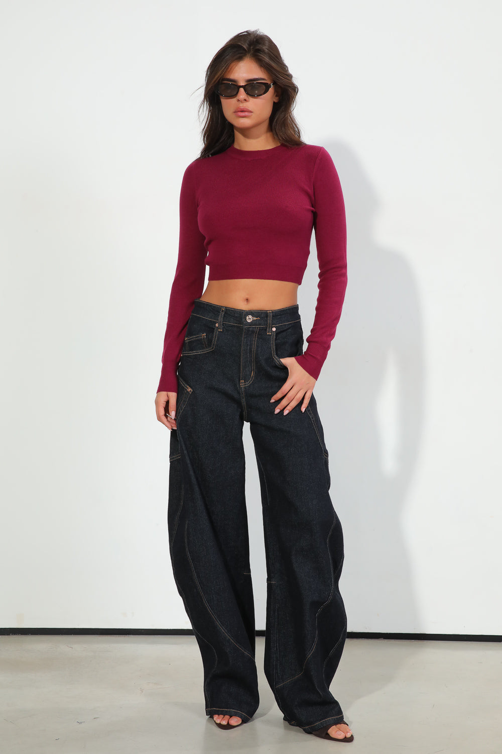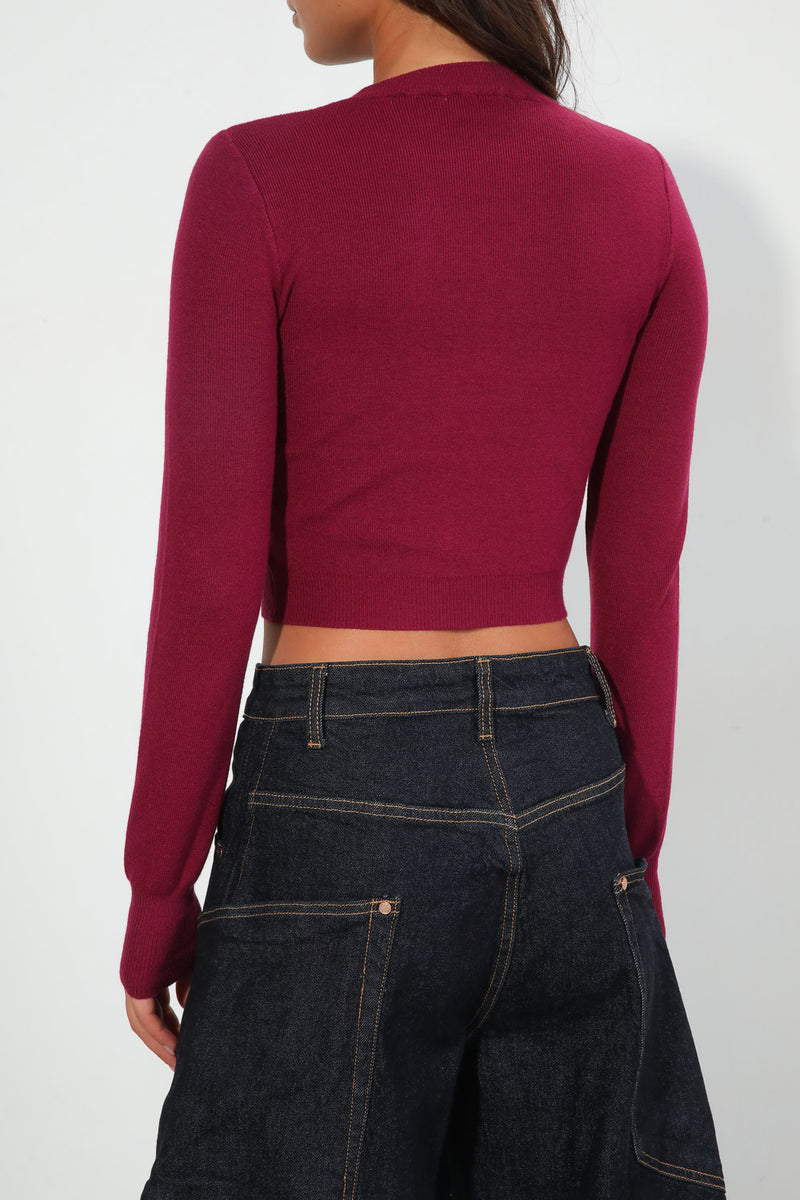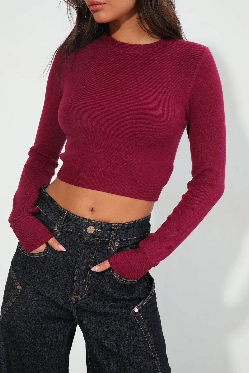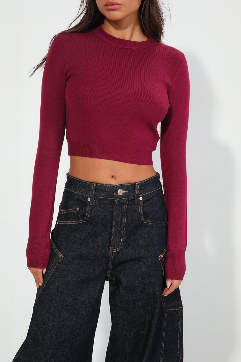 סריג אליזבת בגזרת קרופ צמודה עם צווארון עגול,