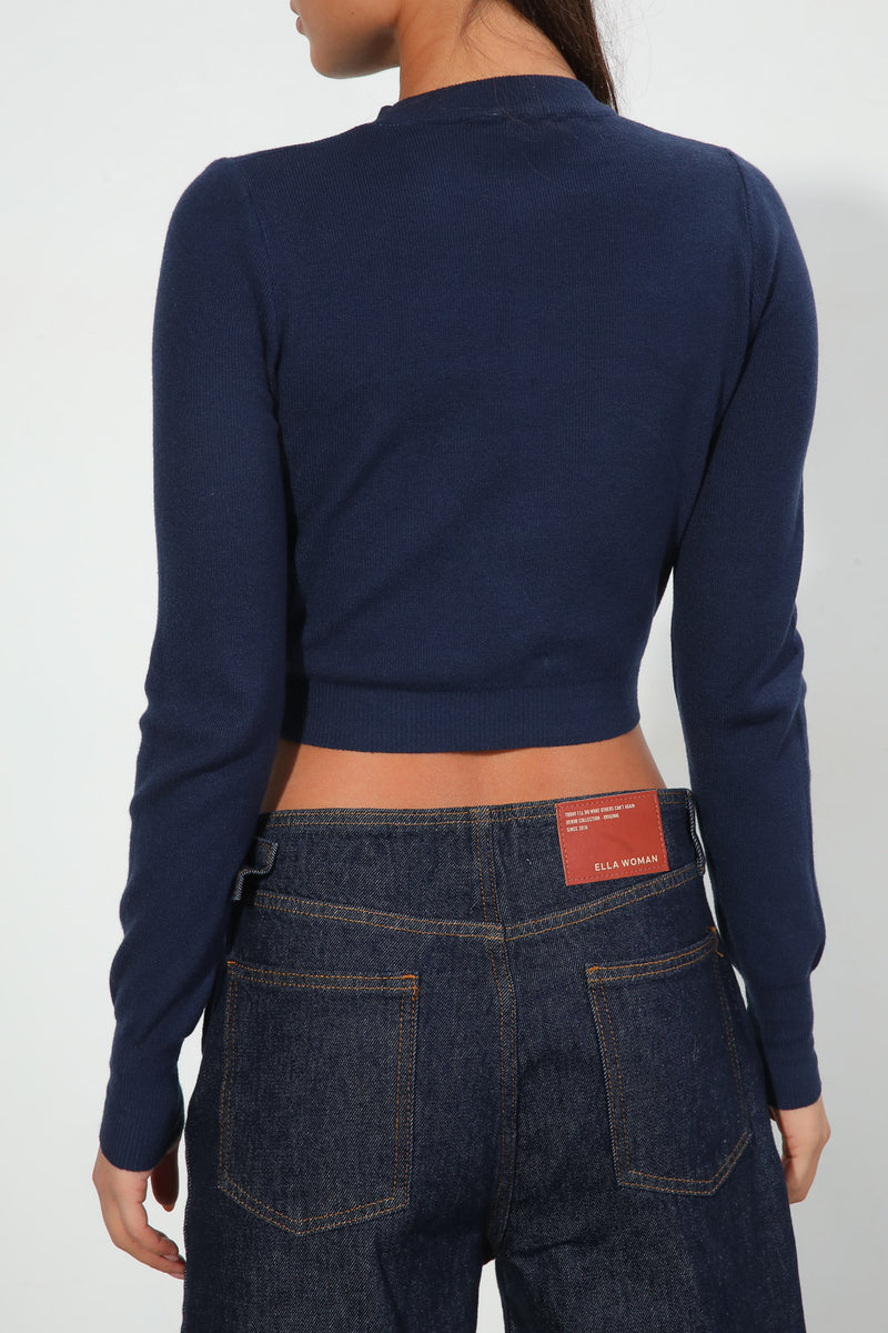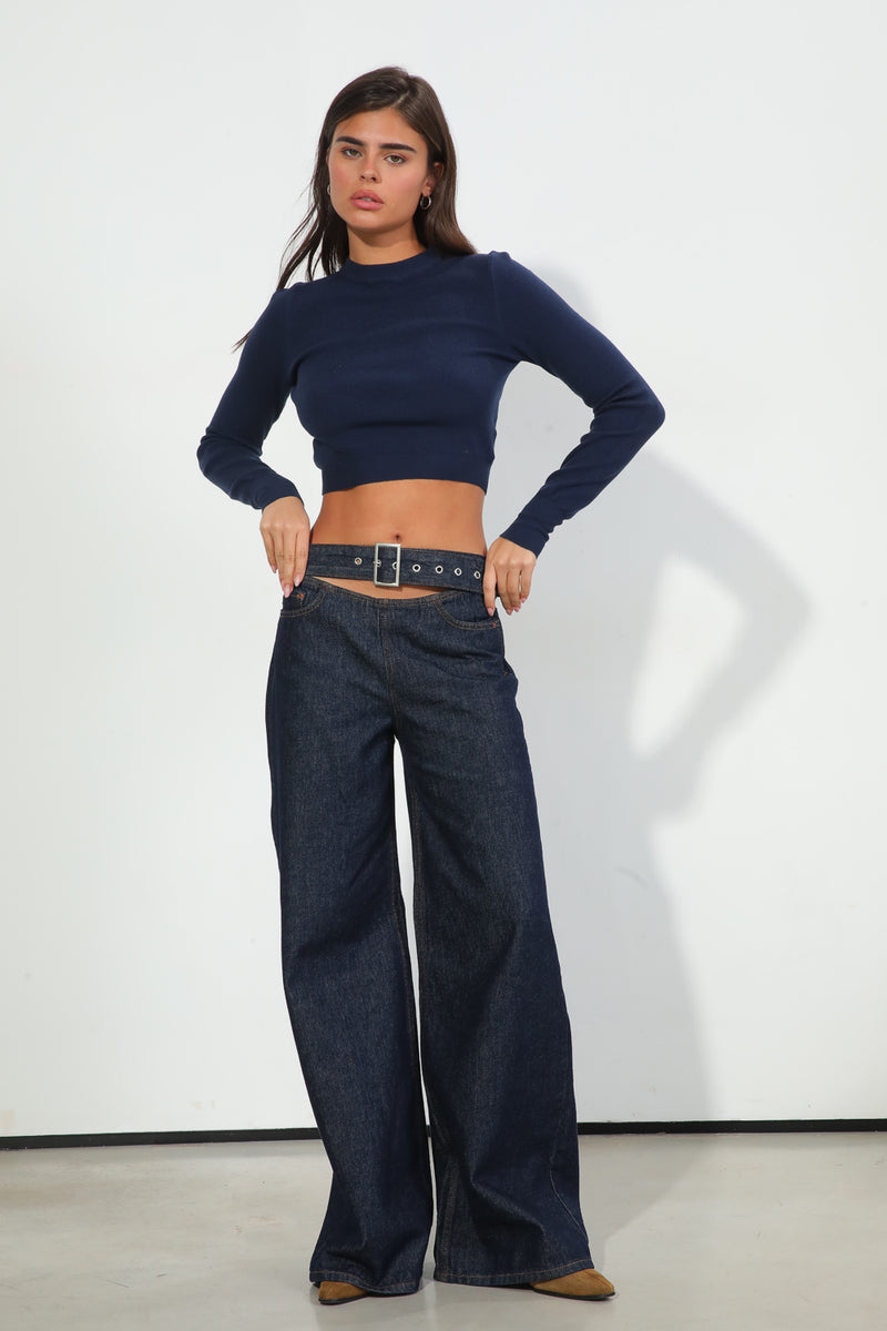 סריג אליזבת בגזרת קרופ צמודה עם צווארון עגול,