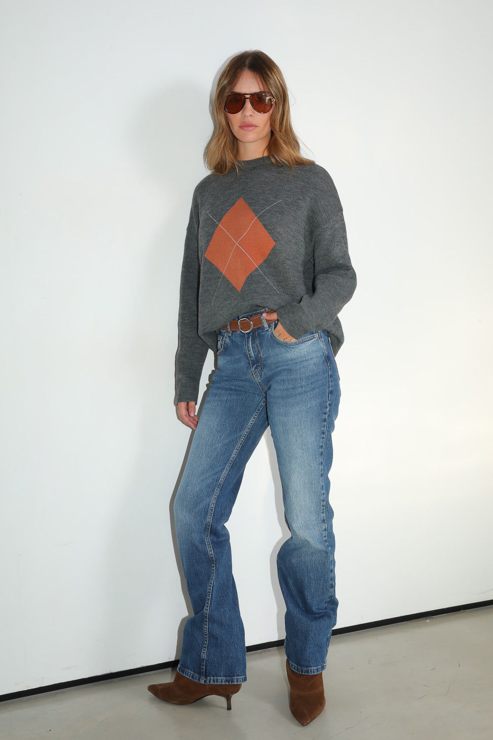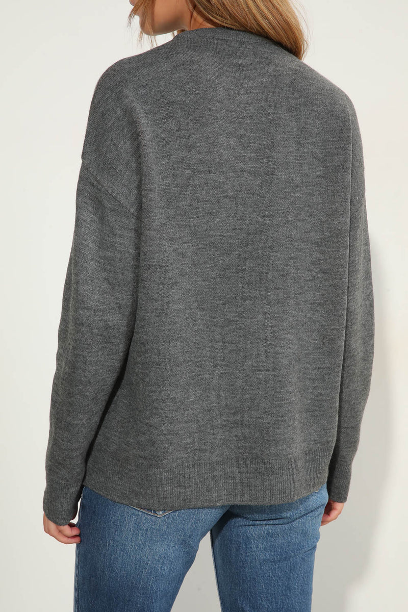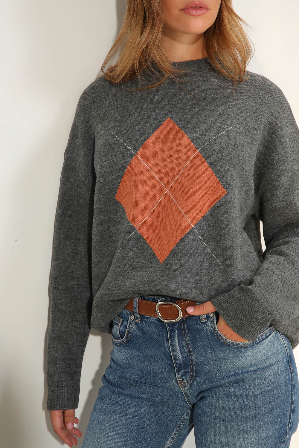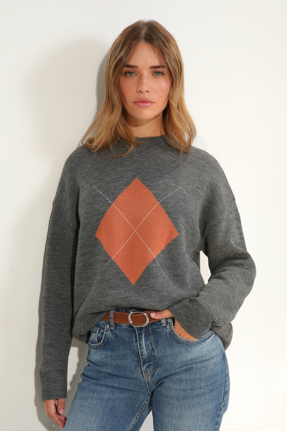 סריג רך ונעים עם דוגמה גיאומטרית בחזית המוסיפה טאץ' מודרני ומיוחד. גזרה נינוחה ונוחה ליום-יום, מושלמת לשילוב עם ג’ינס או חצאית. בד קליל ונעים על הגוף.