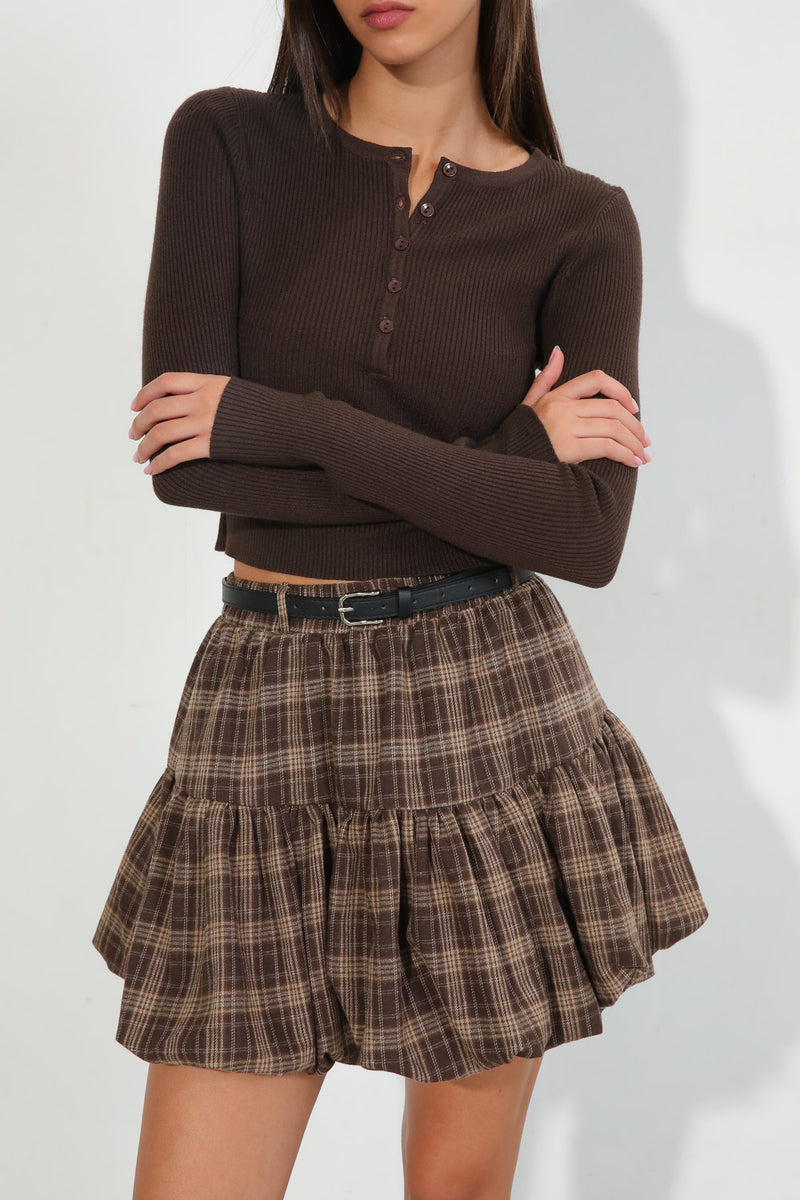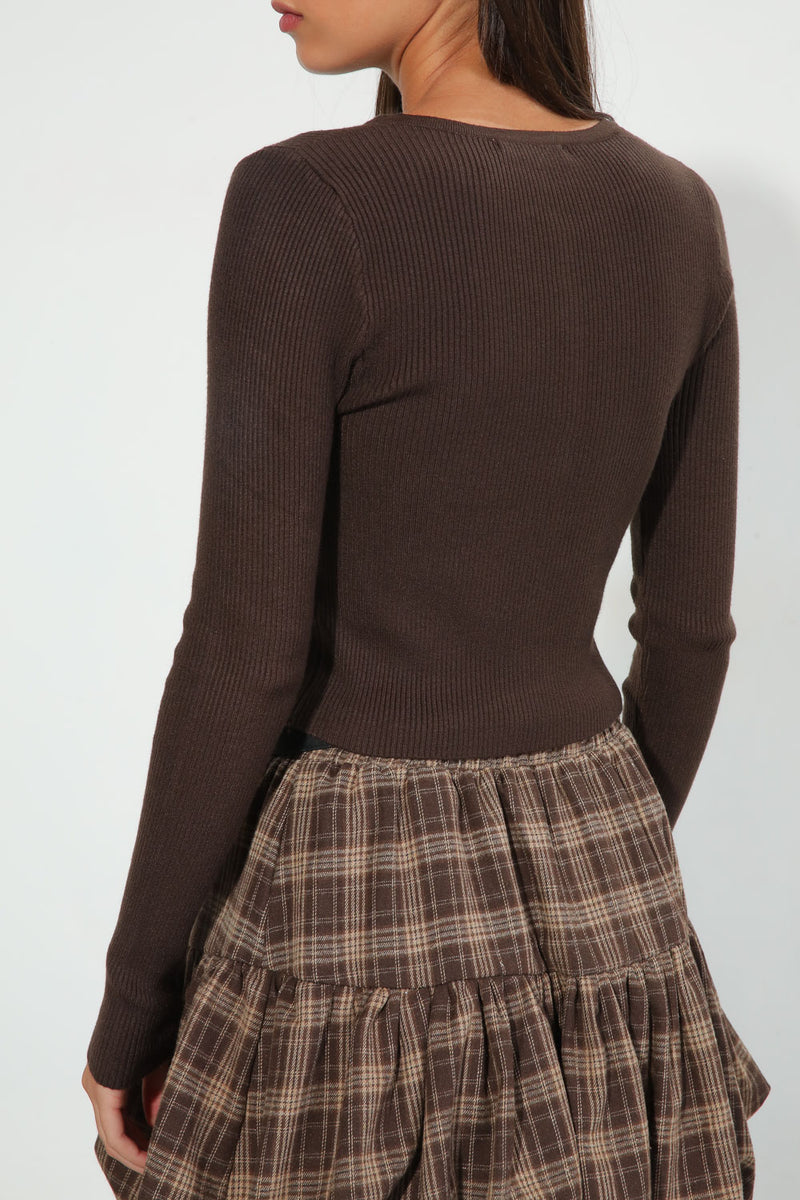 חולצת סריג בטסקטורת ריפ עם צווארון עגול בשילוב כפתורים,