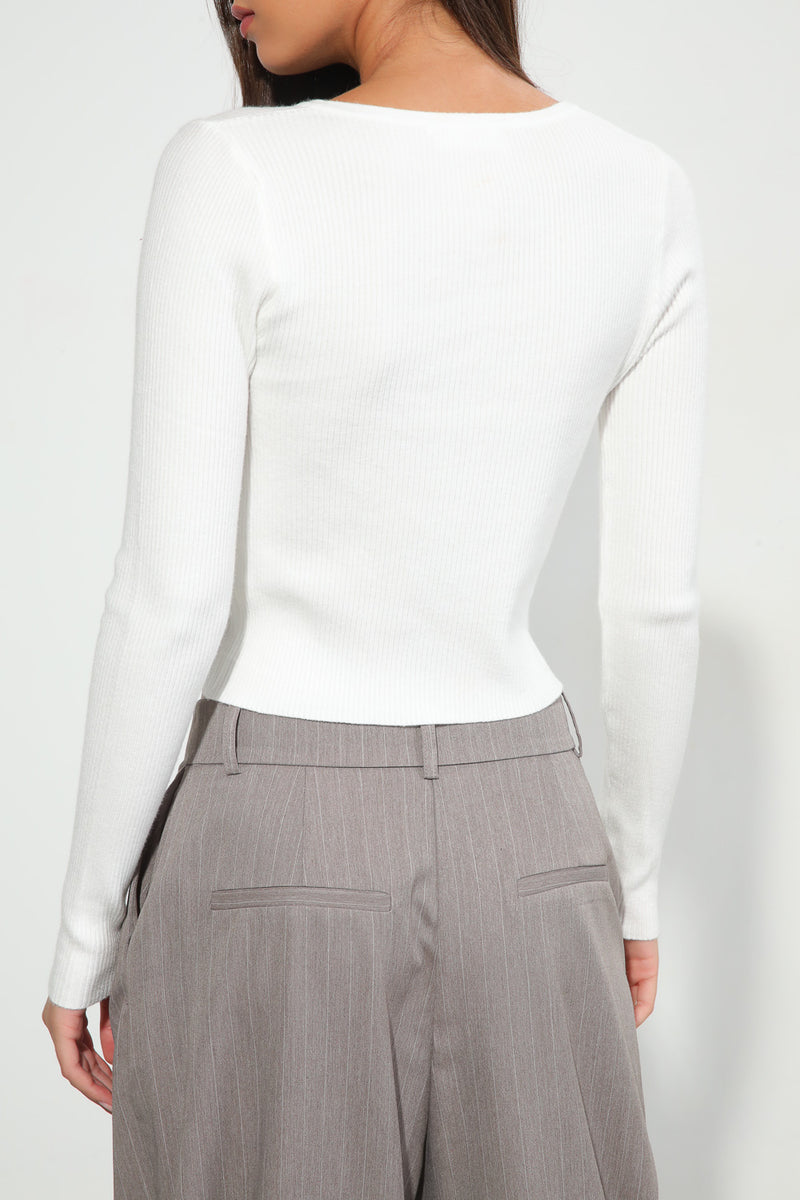 חולצת סריג בטסקטורת ריפ עם צווארון עגול בשילוב כפתורים,