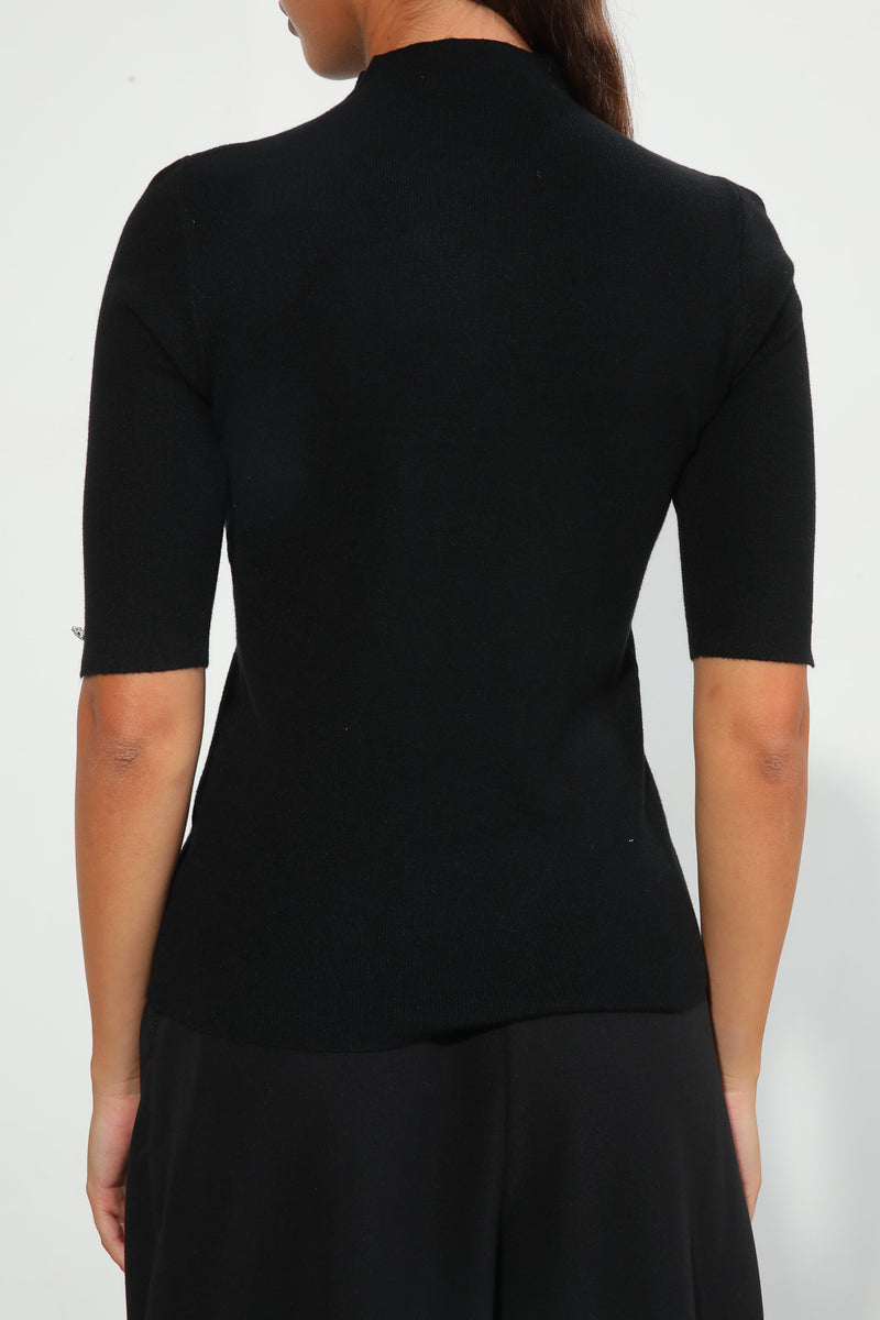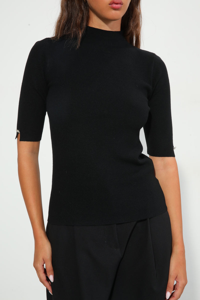 חולצת סריג בגזרה צמודה עם צווארון גולף ואבן בשרוול לתוספת דיטיילס,