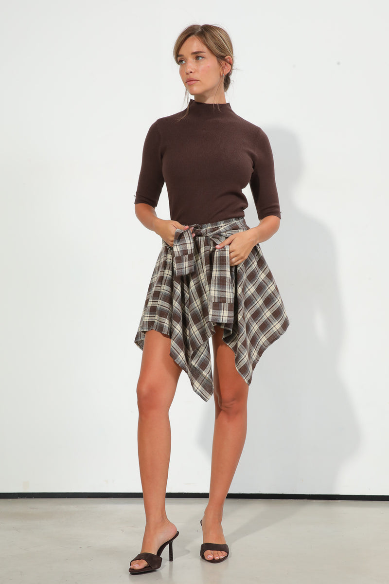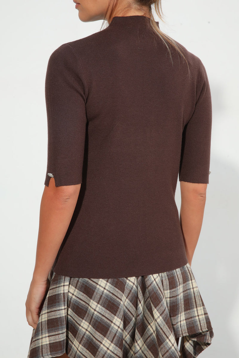 חולצת סריג בגזרה צמודה עם צווארון גולף ואבן בשרוול לתוספת דיטיילס,