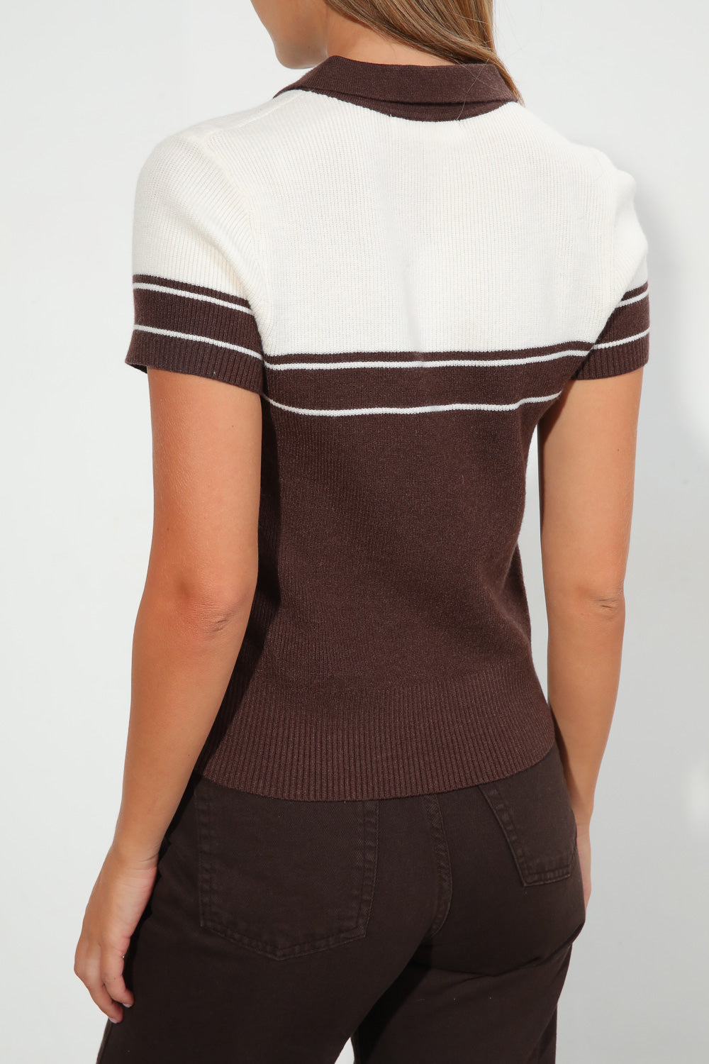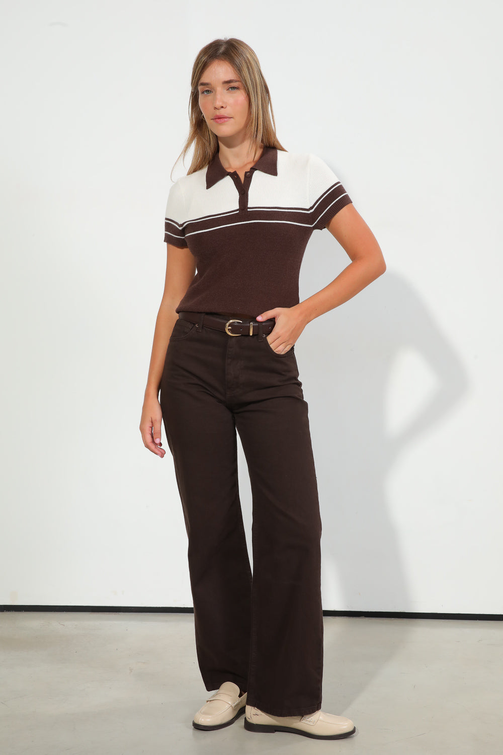 חולצת סריג רונה בטקסטורת ריפ עדינה עם צווארון שינה ו3 כפתורים,