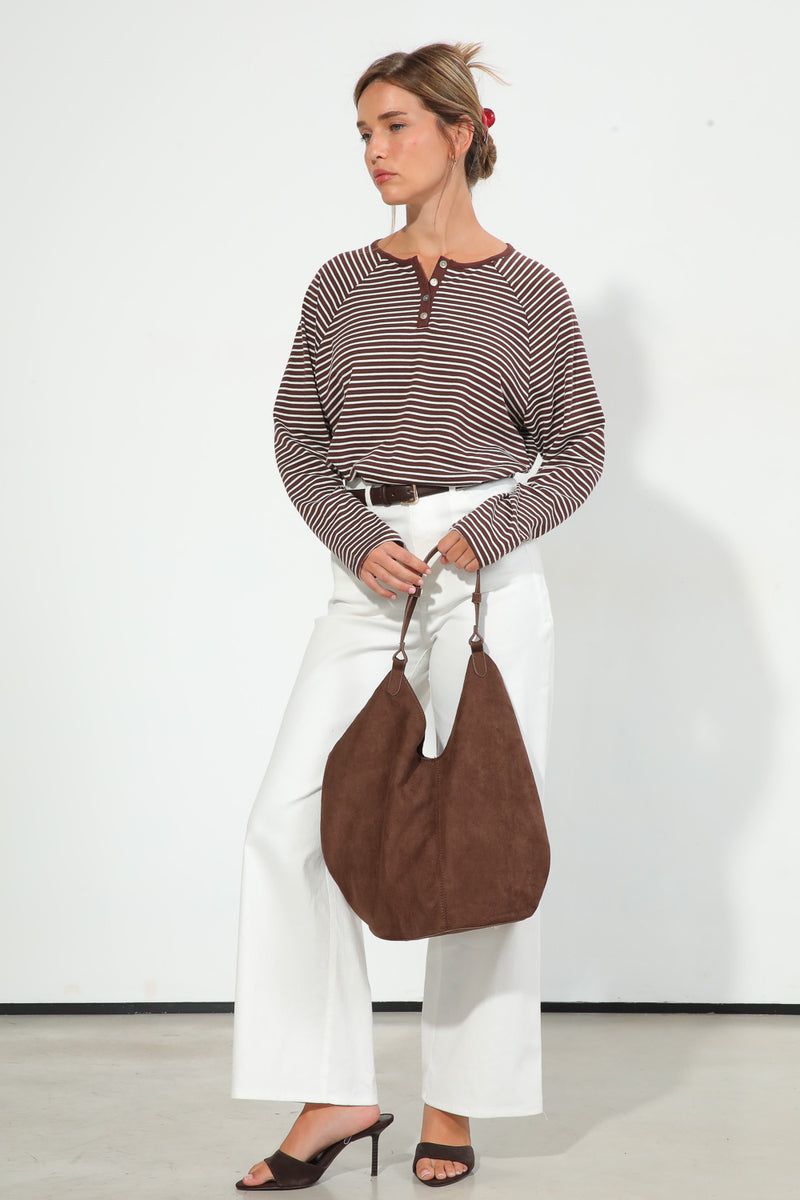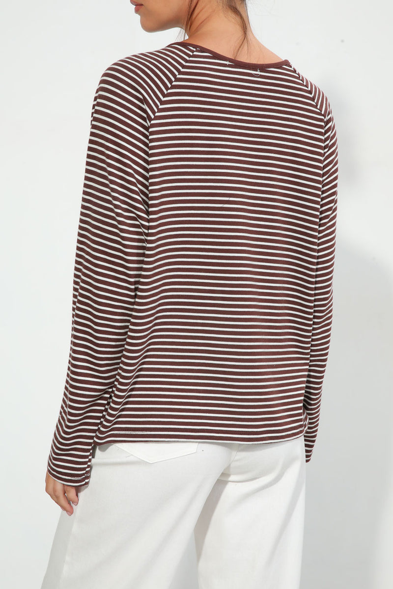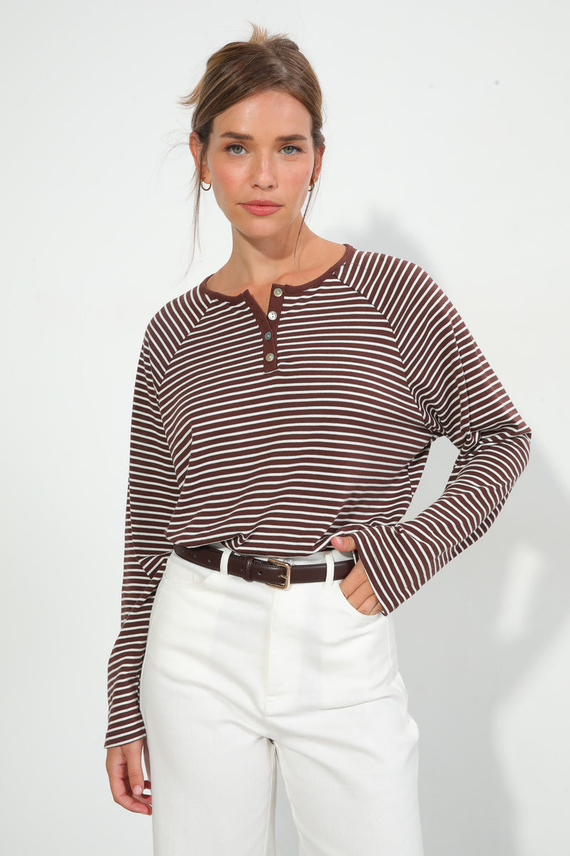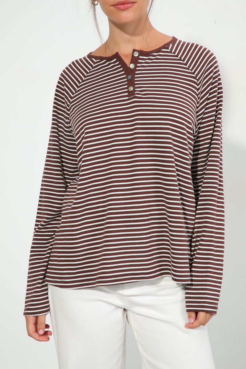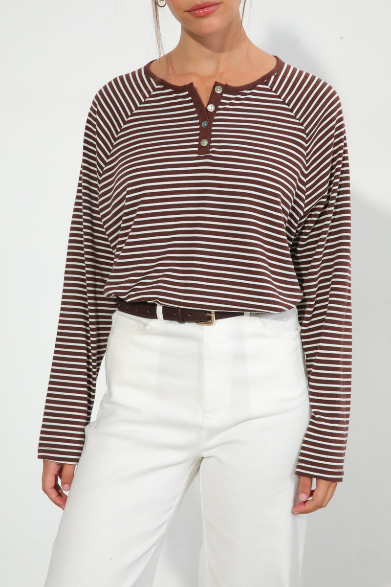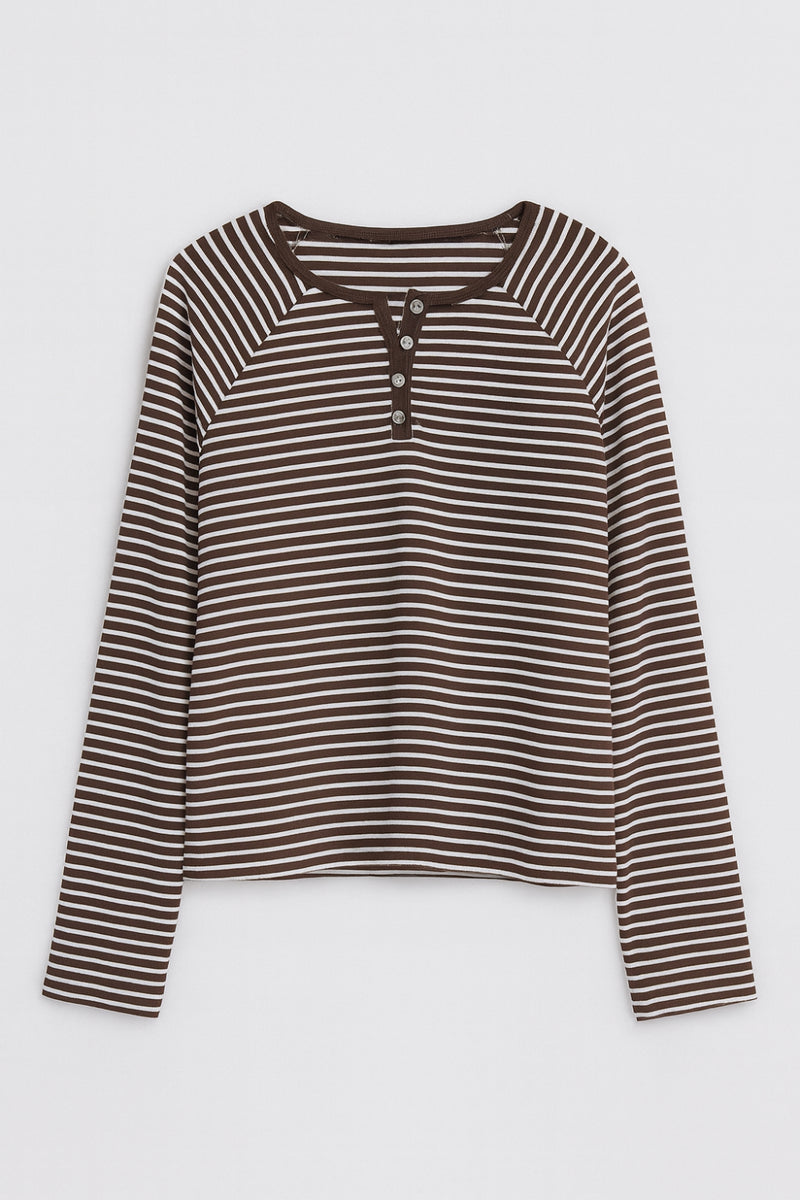 חולצת פסים בגזרת אוברסייז עם צווארון עגול בשילוב סגירת כפתורים,