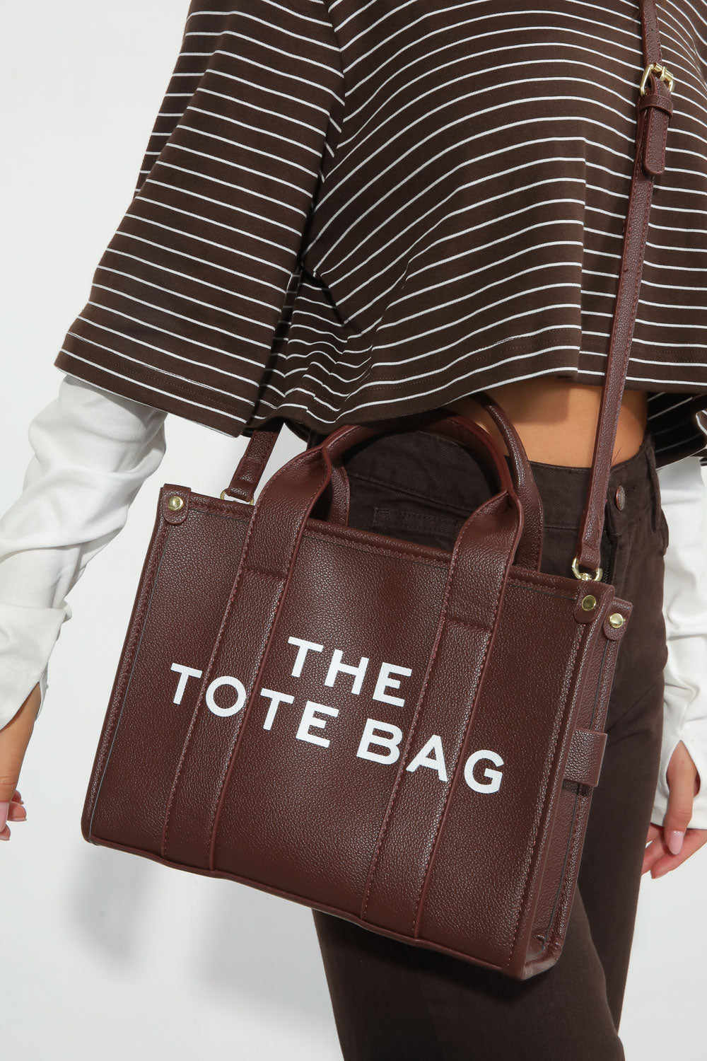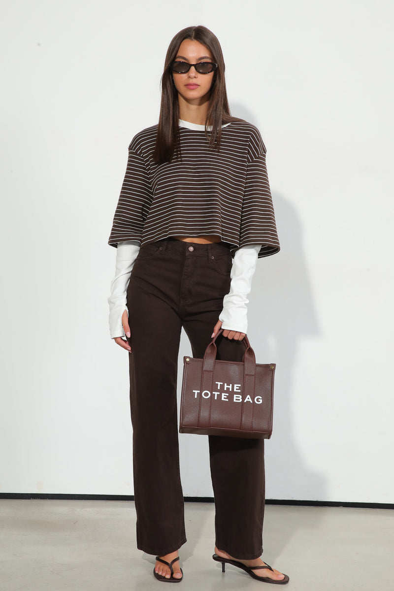 תיק Kinsley הוא הבחירה המושלמת למי שאוהבת לשלב פרקטיות עם סטייל בולט. בעיצוב קלאסי עם טוויסט מודרני, התיק מגיע בגודל נוח במיוחד ובצבע חום כהה שיקפיץ לך כל לוק. הכיתוב THE TOTE BAG מעניק לו מראה אורבני מדויק שלא מתפשר על נוכחות.