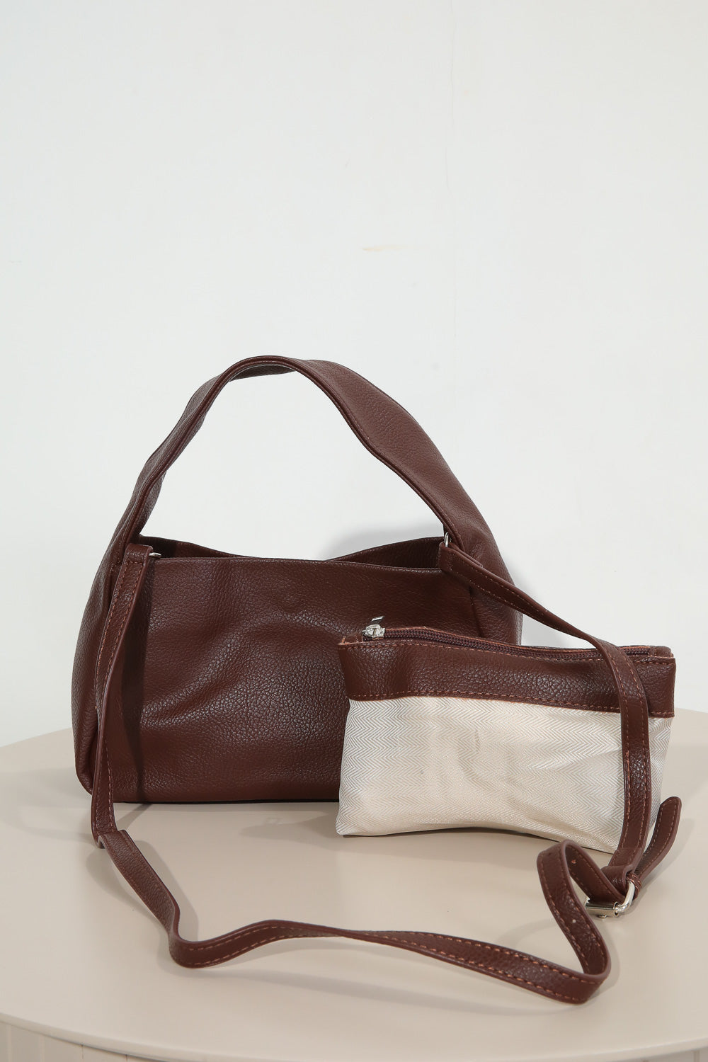 תיק צד דמוי עור עם רצועה ארוכה נוספת וארנק פנימי קטן הניתן לשליפה,